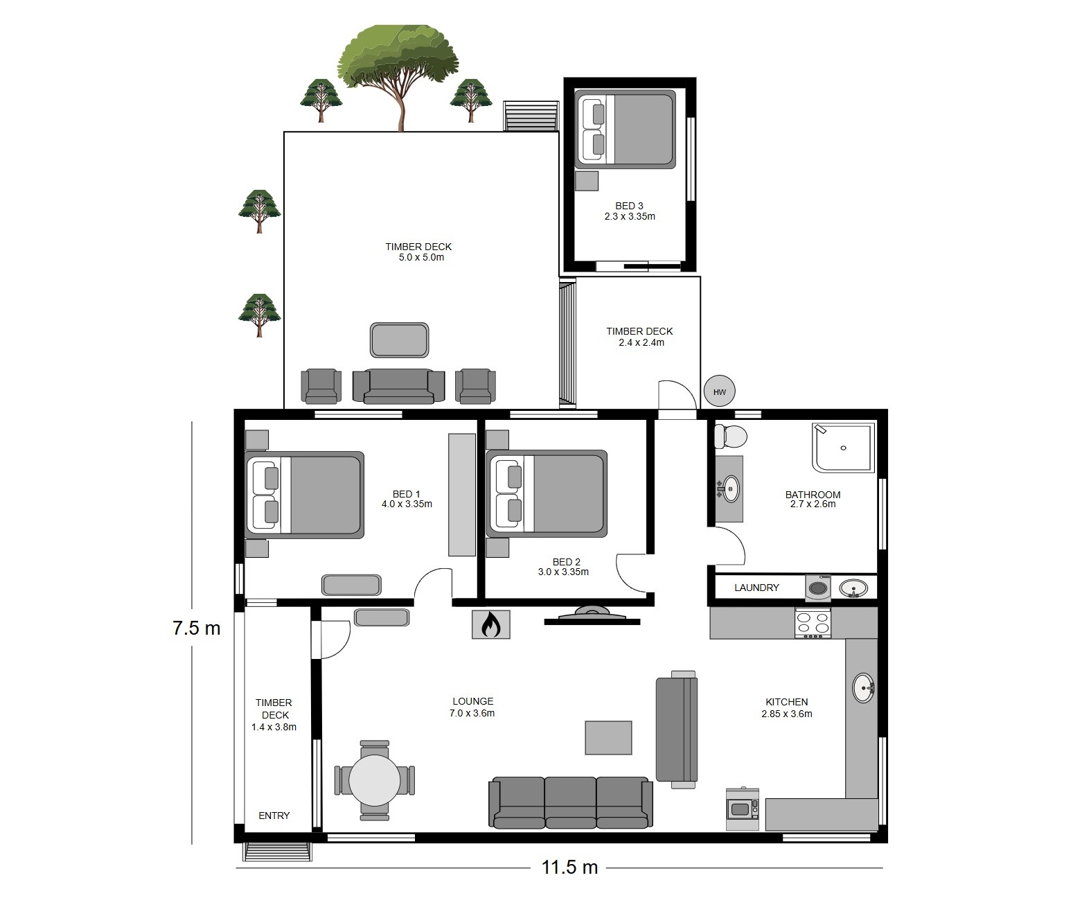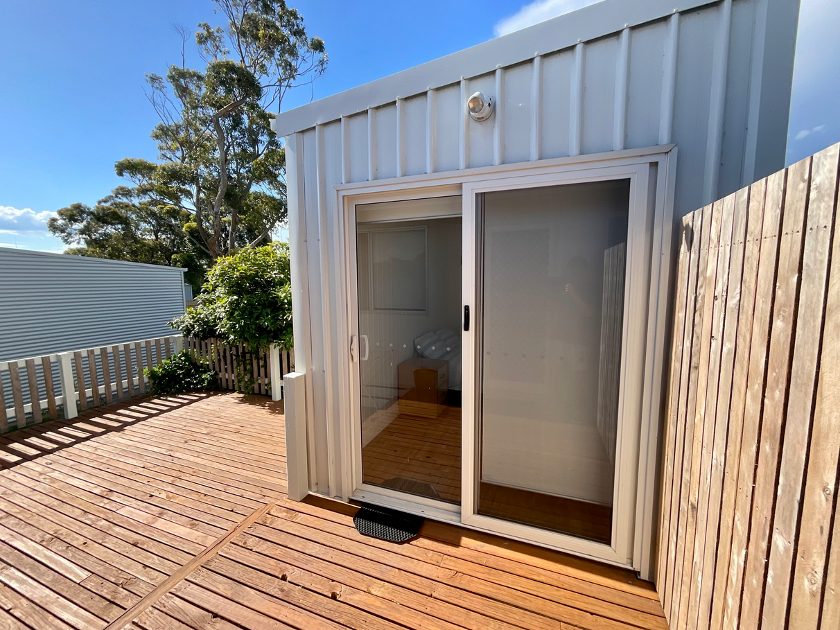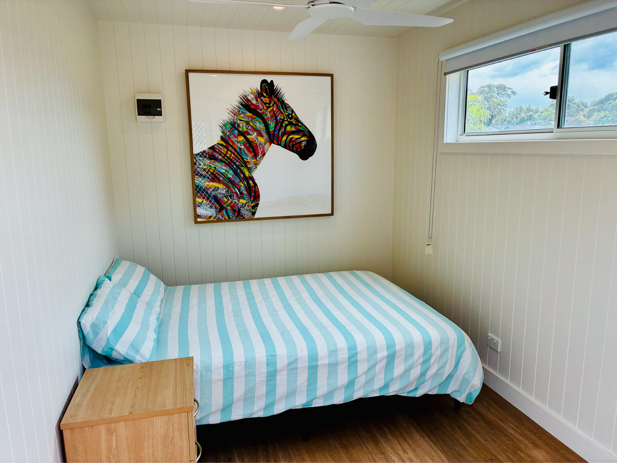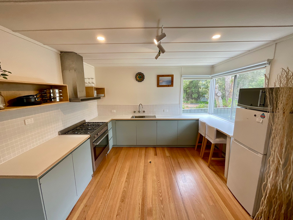 Inside, the light filled layout includes two bedrooms plus a separate third bedroom/pod — ideal for guests, a home office or creative retreat. The open plan living and dining area flows to a beautifully refreshed retro kitchen featuring a new gas cooktop, fan forced oven and character cabinetry. Enjoy winter evenings by the fireplace or entertain on the expansive north facing timber deck. Modern upgrades include a new energy efficient Midea heat pump hot water system and replaced internal walls for durability.