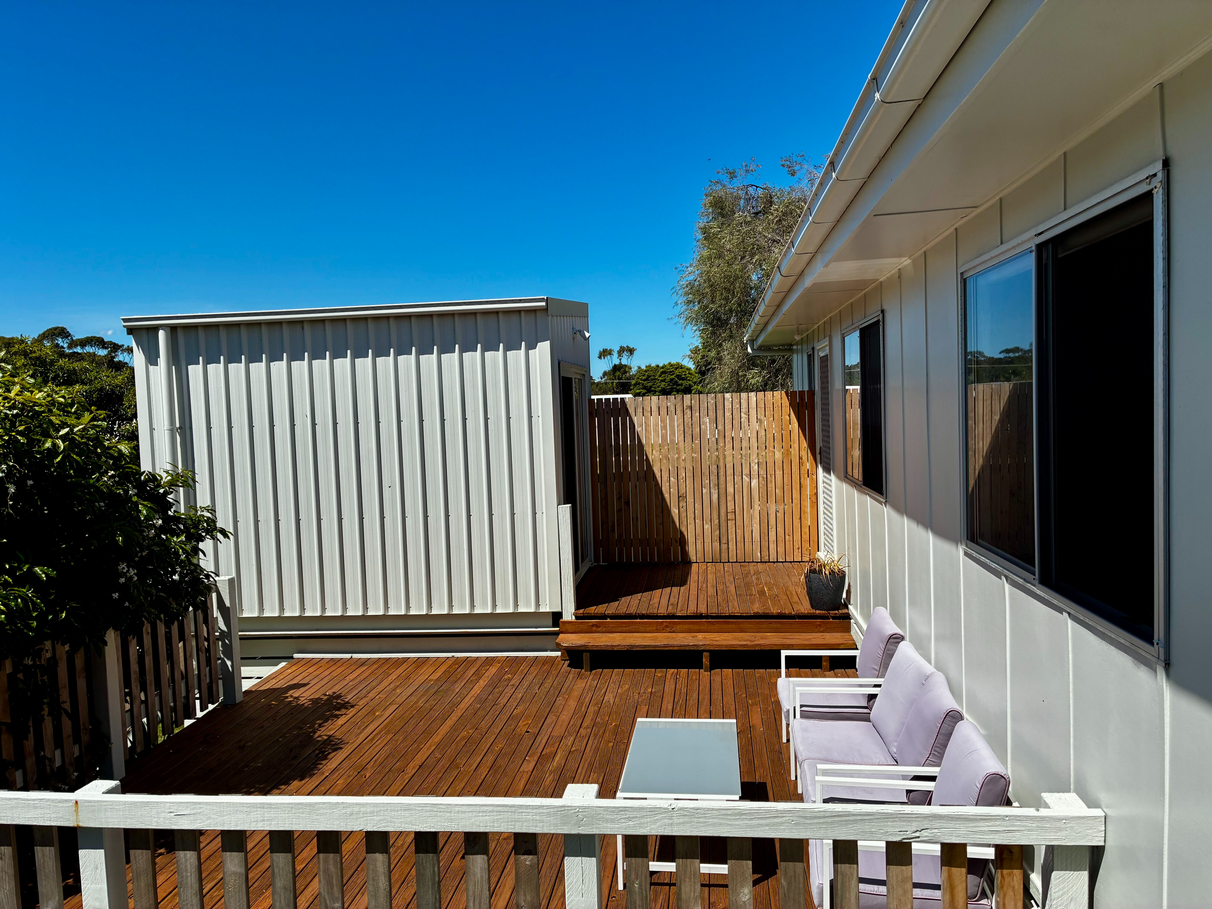 A brand new 7 x 6m Colorbond shed with remote door provides excellent space for a boat, caravan or workshop, while under house storage keeps surf and fishing gear secure.