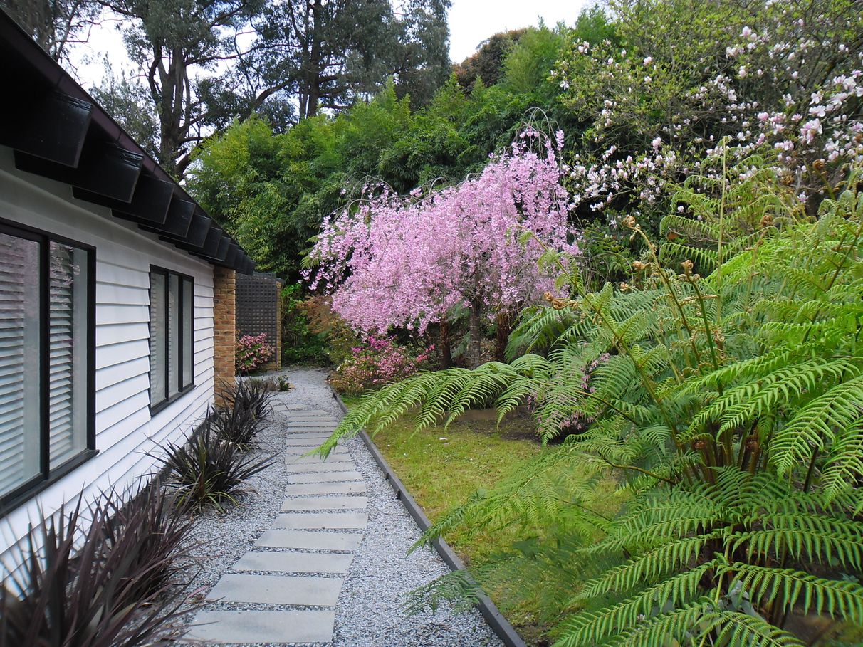 Pathways wind through the established gardens where there are 100 tree ferns and other native and exotic flora including maples, magnolias, rhododendrons, hydrangeas, cabbage-palms and many more varieties. Enjoy the amazing sunsets, seasonal changes and colour all year round.
