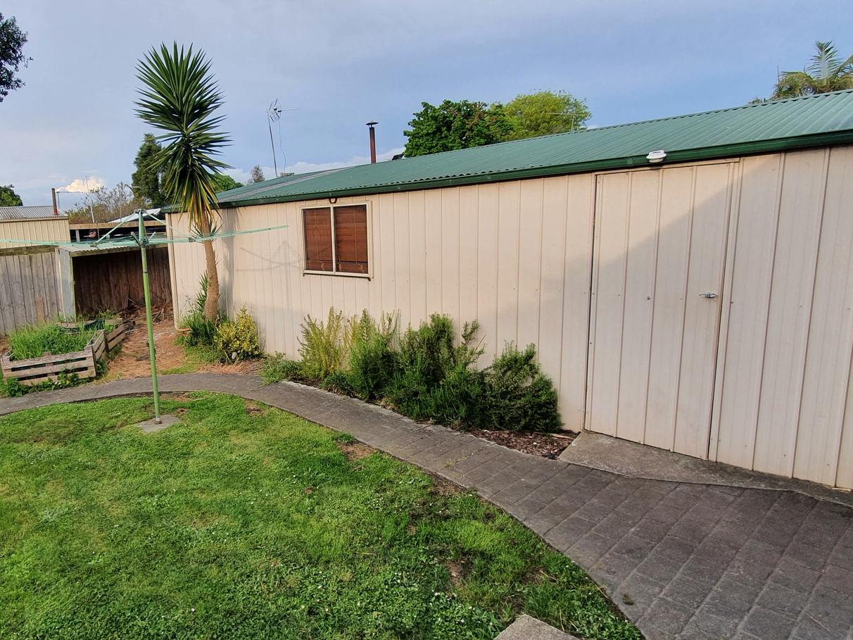 Large backyard, (room to extend) two washing lines one undercover. above ground garden beds (parsley, sage, mint and rosemary) woodshed and garden storage.
