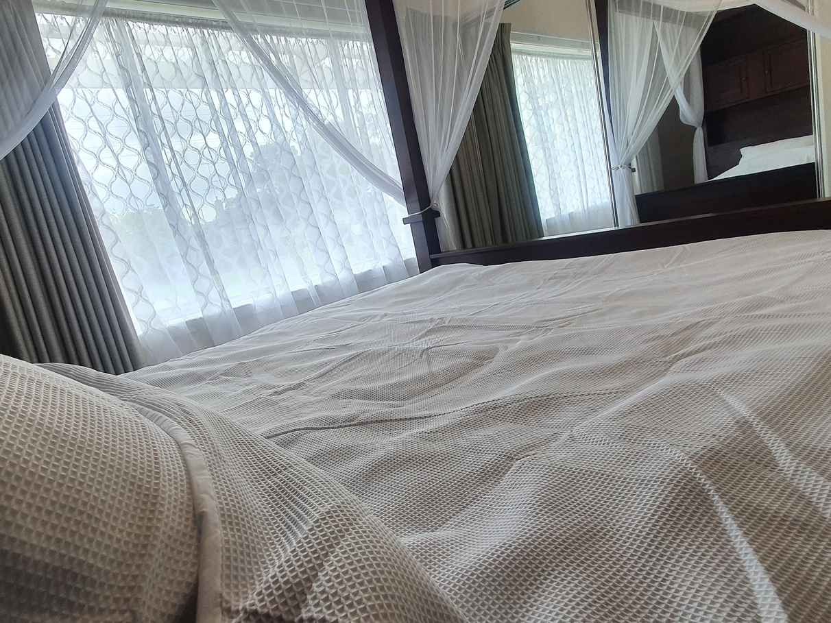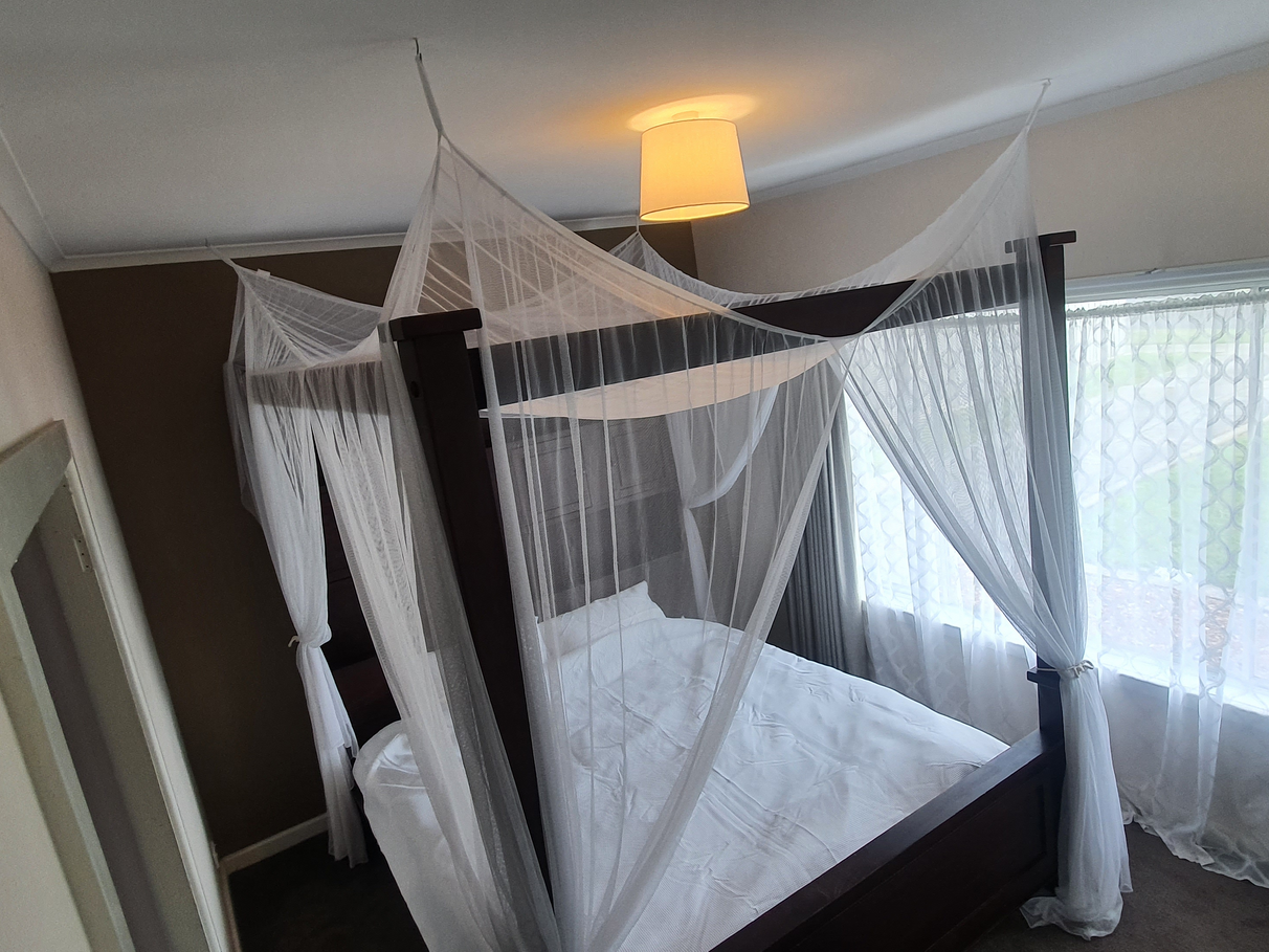 2 carpeted bedrooms (includes king size four post bed) with built in robes.