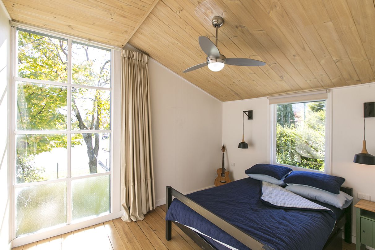 The original timber flooring, pitched ceilings and a wood fireplace complement the modern kitchen which features an induction cooktop and lots of bench and cupboard space. There is also a split system air conditioner and a ceiling fan.