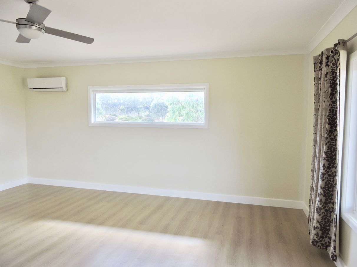 Enter the home into a tiled hallway which accesses the 4th bedroom / home office and carries on into the large spacious light filled lounge. Picture windows reveal relaxing views to the Grampians and surrounding natural woodlands. A unique formal mantlepiece surrounds a through the wall Jindara woodheater that keeps the home warm and cosy through winter and a quality Panasonic ecoview reverce cycle air conditioner provides relief from the summer heat. Large key locked double glazed windows allow plenty of light in with views accross the fenced paddock to keep an eye on your horses or stock. The light oak commercial laminated flooring continues through into the large chefs kitchen with a modern colour palette and contempary cabinetry, soft closing drawers, large island bench with composite stone bench tops. An Ariston Pyrolitic (self cleaning) SS Chefs oven coupled with an Ariston 60cm induction hob make for effortless entertaining! An Ariston SS extractor and Asko Eco SS Dishwasher along with a large walk in pantry and plenty of cupboard space, great task lighting and a large deep SS sink makes this a perfect chefs kitchen. Opposite the kitchen is the light and airy dining room with free standing wood heater, ceiling fan and double glazed sliding doors. Here is the opportunity for you to add your touch and build an extensive deck or above ground pool subject to council approval.