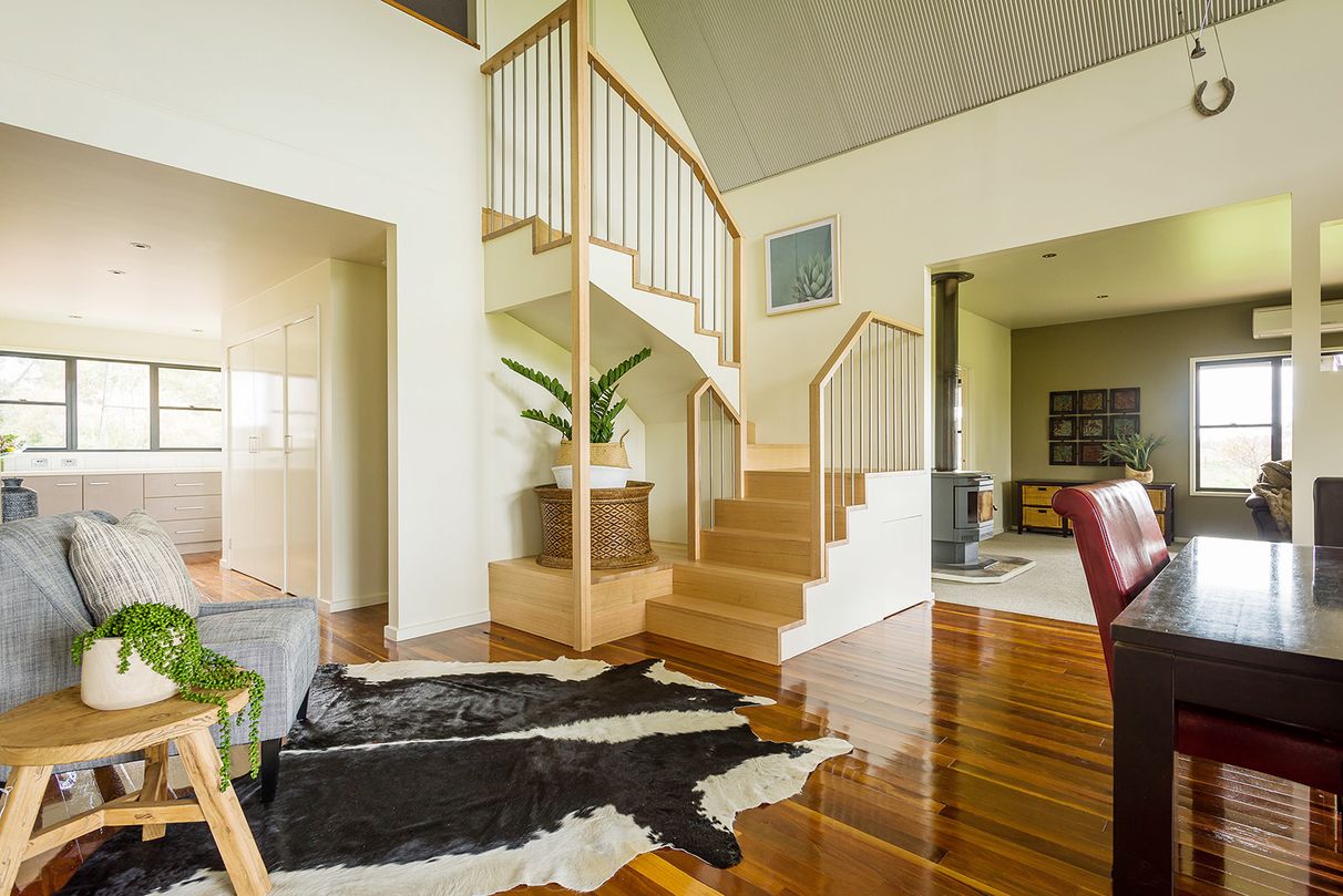 Showing off a customised, modern streamlined, yet earthy design using a lovely blend of materials. Packed with thoughtful features, 3 split system air-conditioners throughout and a slow combustion wood heater, triple carport - along with soaring, pitched ceilings, spacious, sunlit interiors with a striking brand-new timber staircase at the heart, an abundance of natural light trickling in through expansive windows and excellent outdoor entertaining with a decked veranda around three sides of the home.
