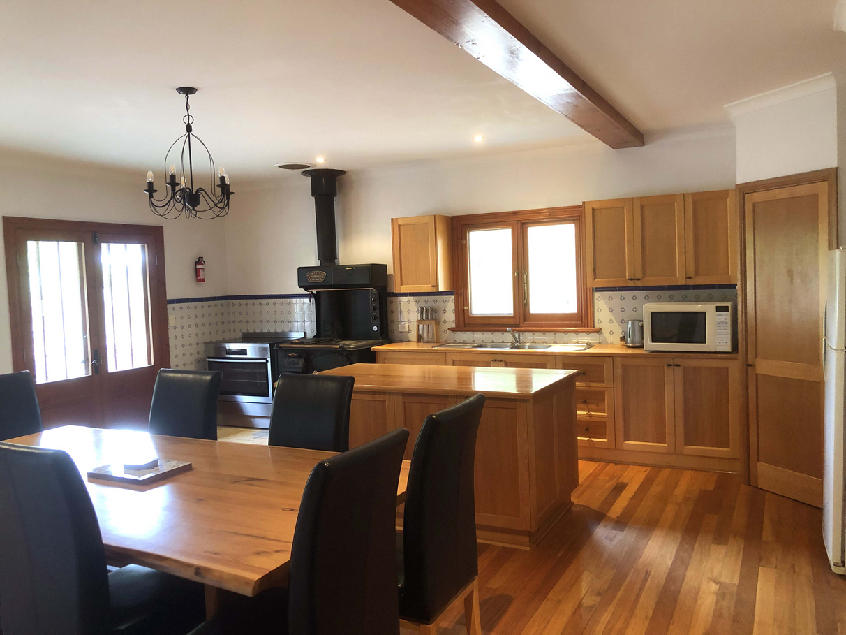 The huge kitchen area features two ovens, an electric 900mm with cooktop and an ornate homestead cooker which is both wood or electric. The large island offers even more storage as well as housing the dishwasher. There is a generous sized dining/meals area and a large laundry.