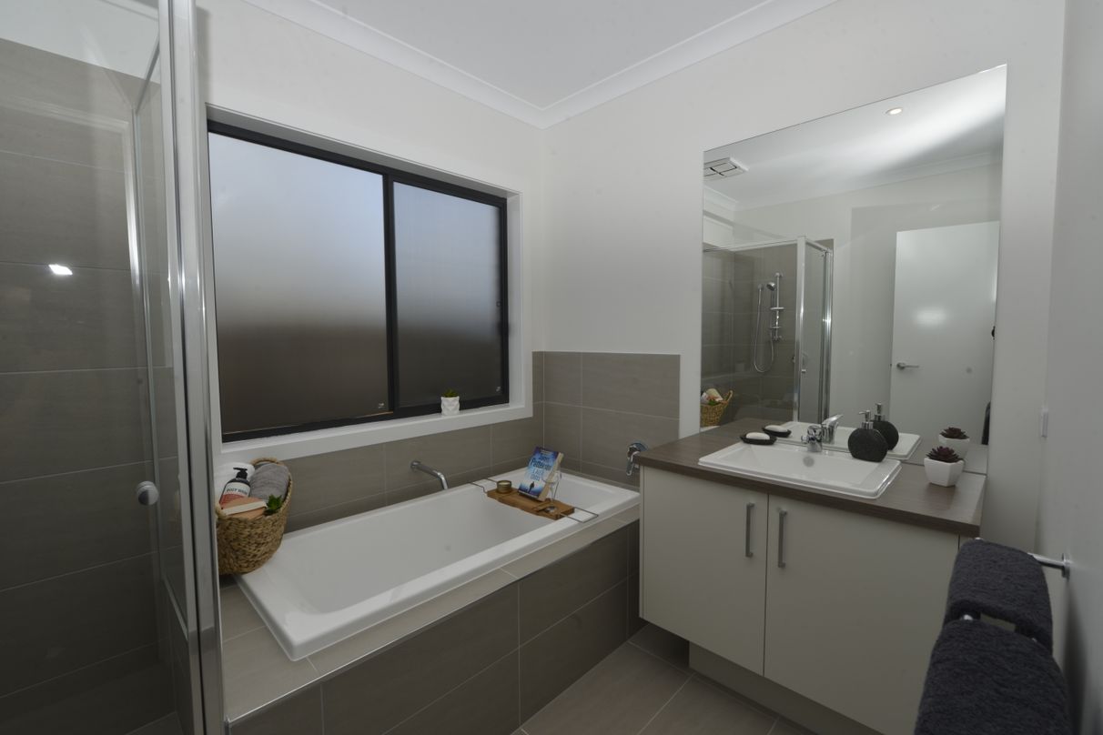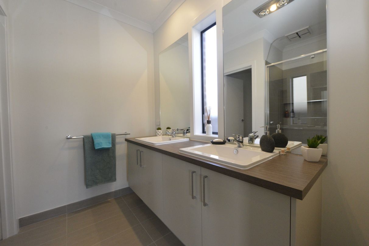 Four bedrooms - three with sliding door robes and serviced by the family bathroom with bath, shower and separate toilet, plus a handy study nook. The master bedroom comprises a large walk-in-robe and stylish ensuite with oversized shower, twin vanity basins and a separate toilet!