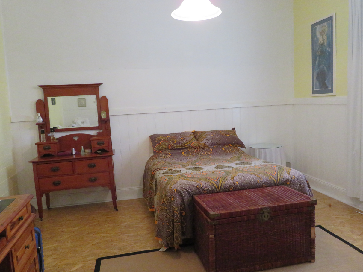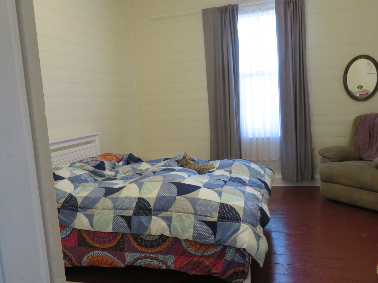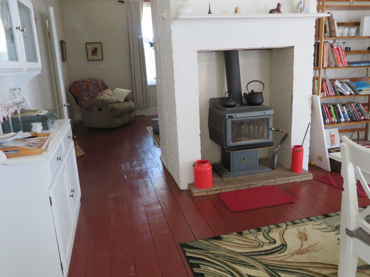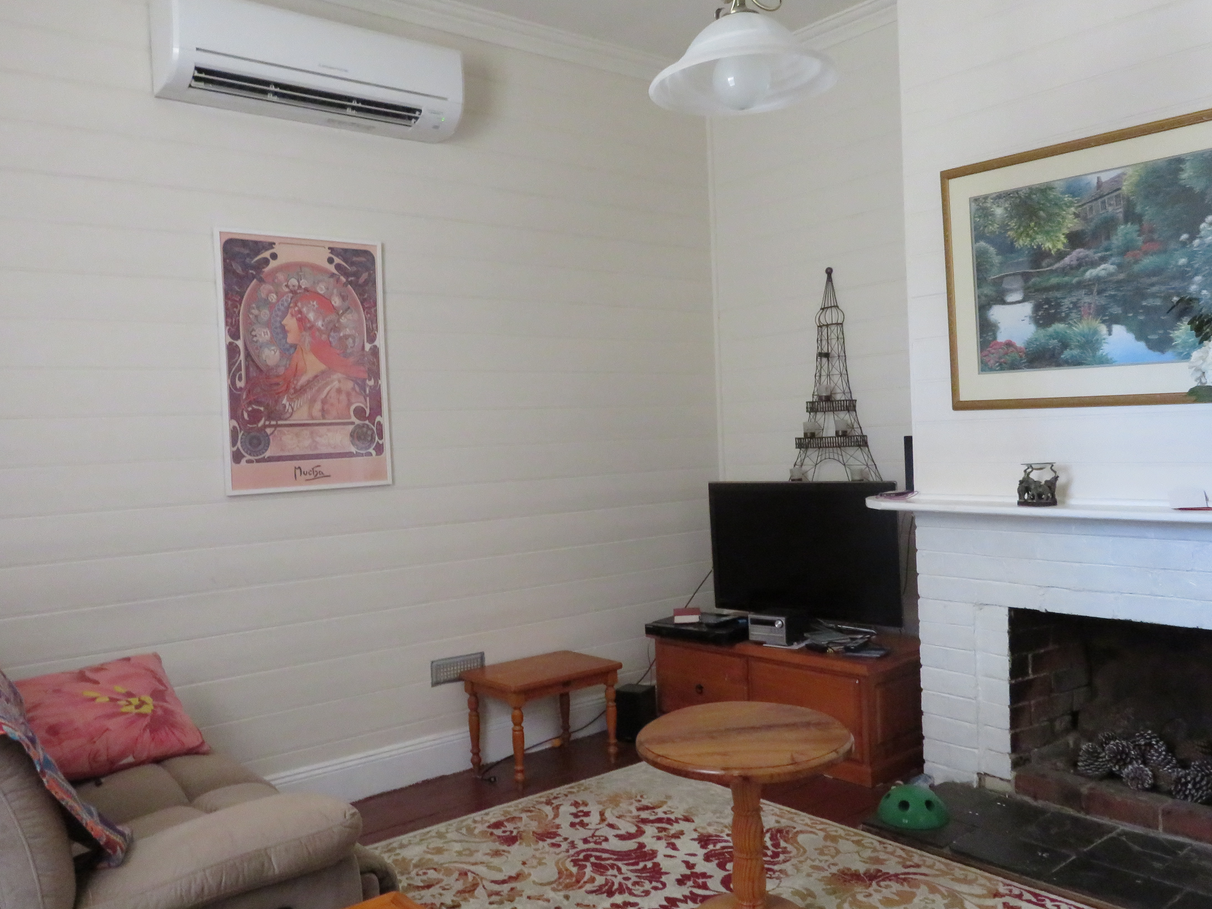 Situated in a leafy, quiet street, this renovated cottage is spacey with 2 very large bedrooms, wide hallway, easy wheelchair access all around. Open plan kitchen, dining room & lounge with slow combustion wood heater. Aircon in lounge room