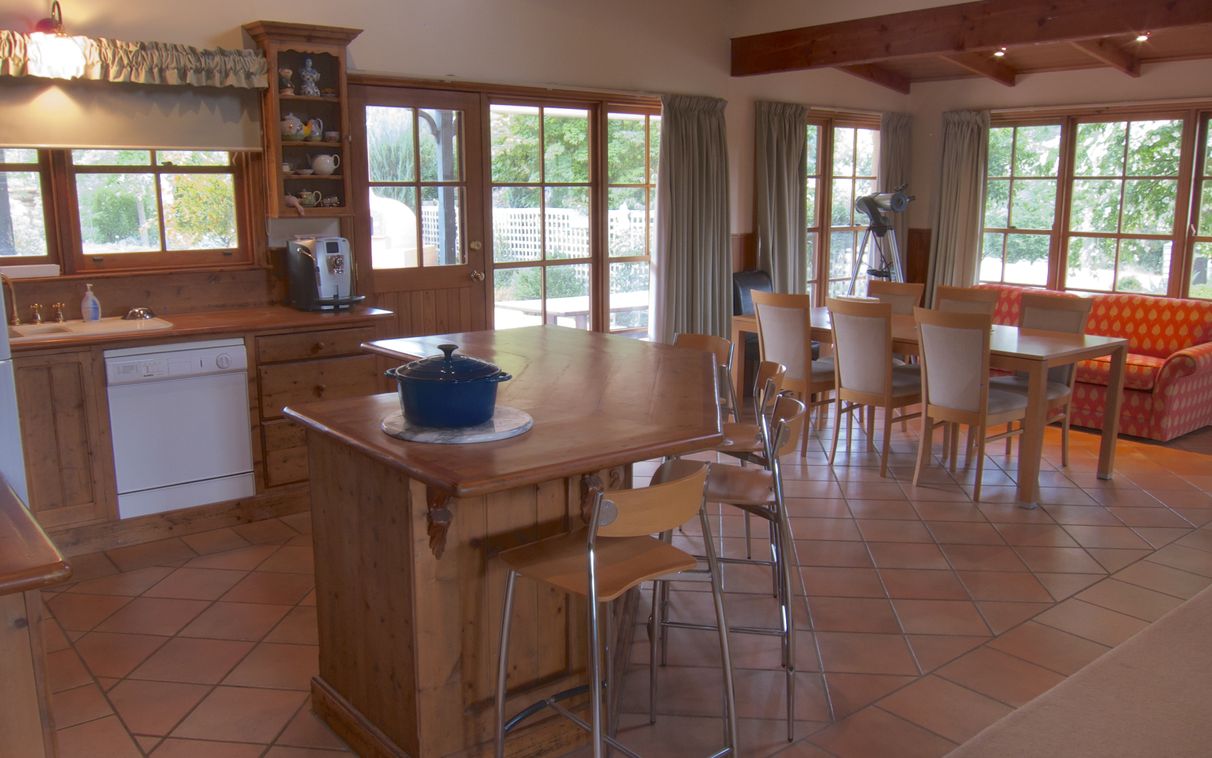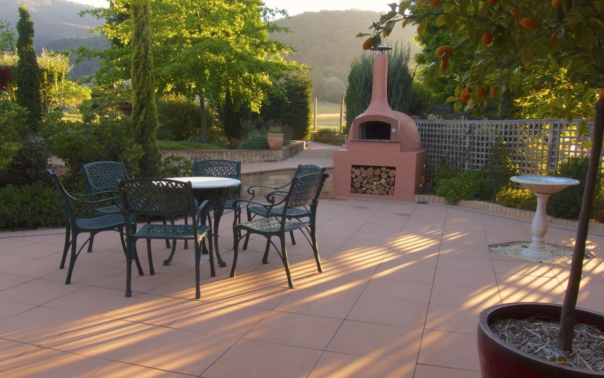 The residence is brick veneer and in effect two homes in one with two spacious open plan living areas at either end of the house. One features a Baltic pine kitchen, dining area plus a lounge area with a stone fireplace and wood-burning heater. The other has a modern quality kitchen with Miele appliances, walk-in pantry, spacious dining area and an open plan living/entertainment area. Both areas look out into a wonderful north facing courtyard with a wood fire pizza oven and a pond with a fountain. The house has four bedrooms, one with a walk-in wardrobe and ensuite, another with ensuite including a spa bath. The main bathroom services the other two bedrooms.
