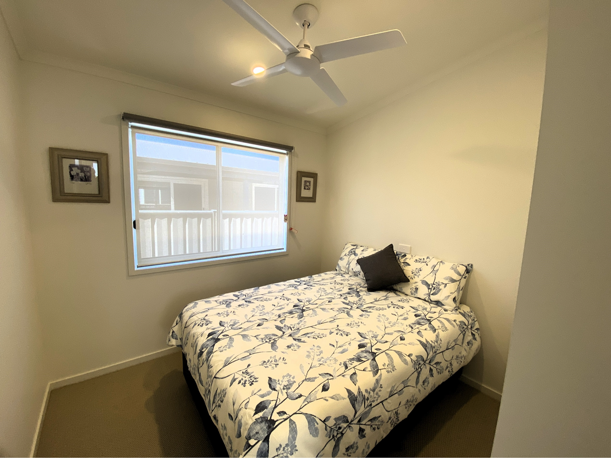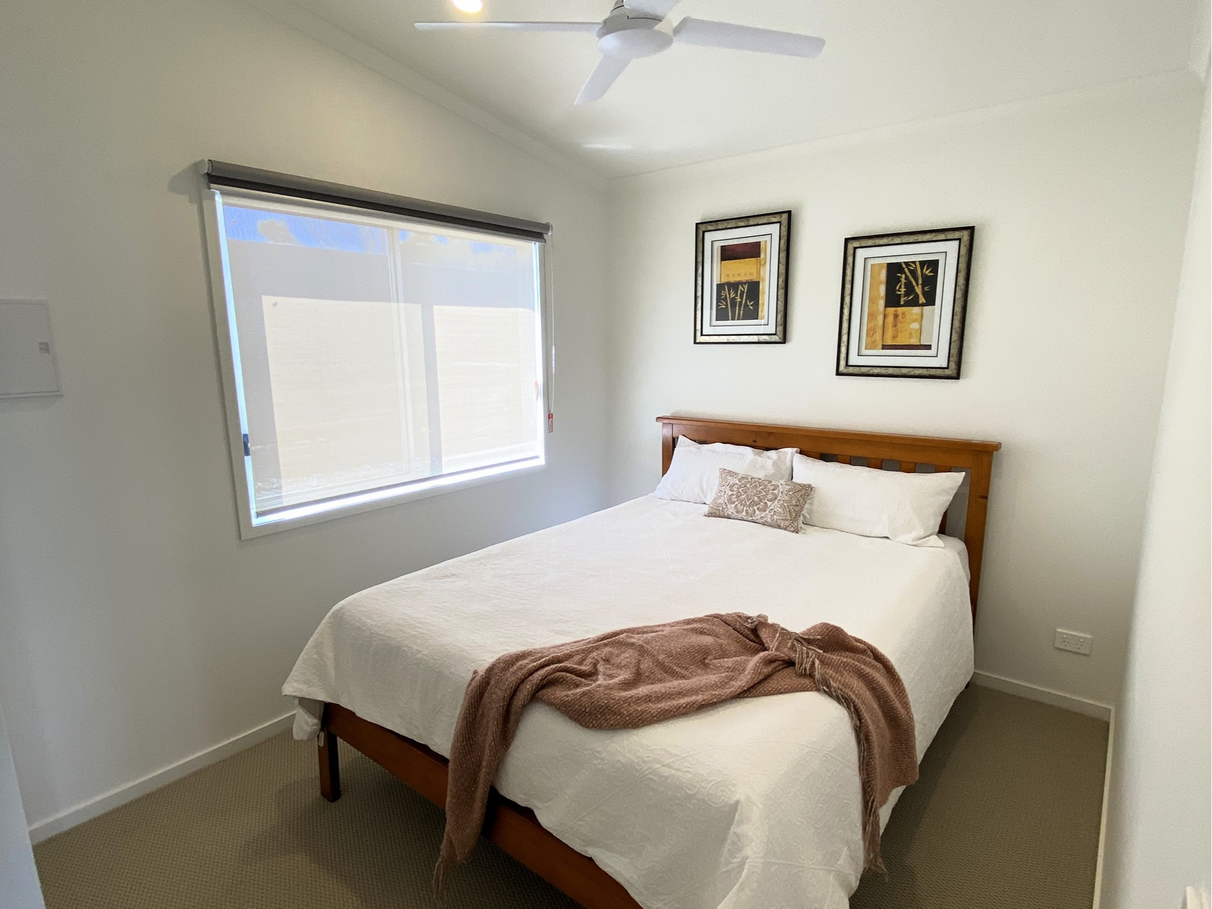 Both bedrooms have built-in robes and comfortably fit a queen-size bed with bedside tables.