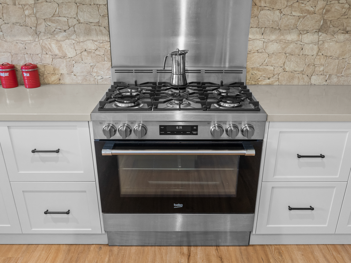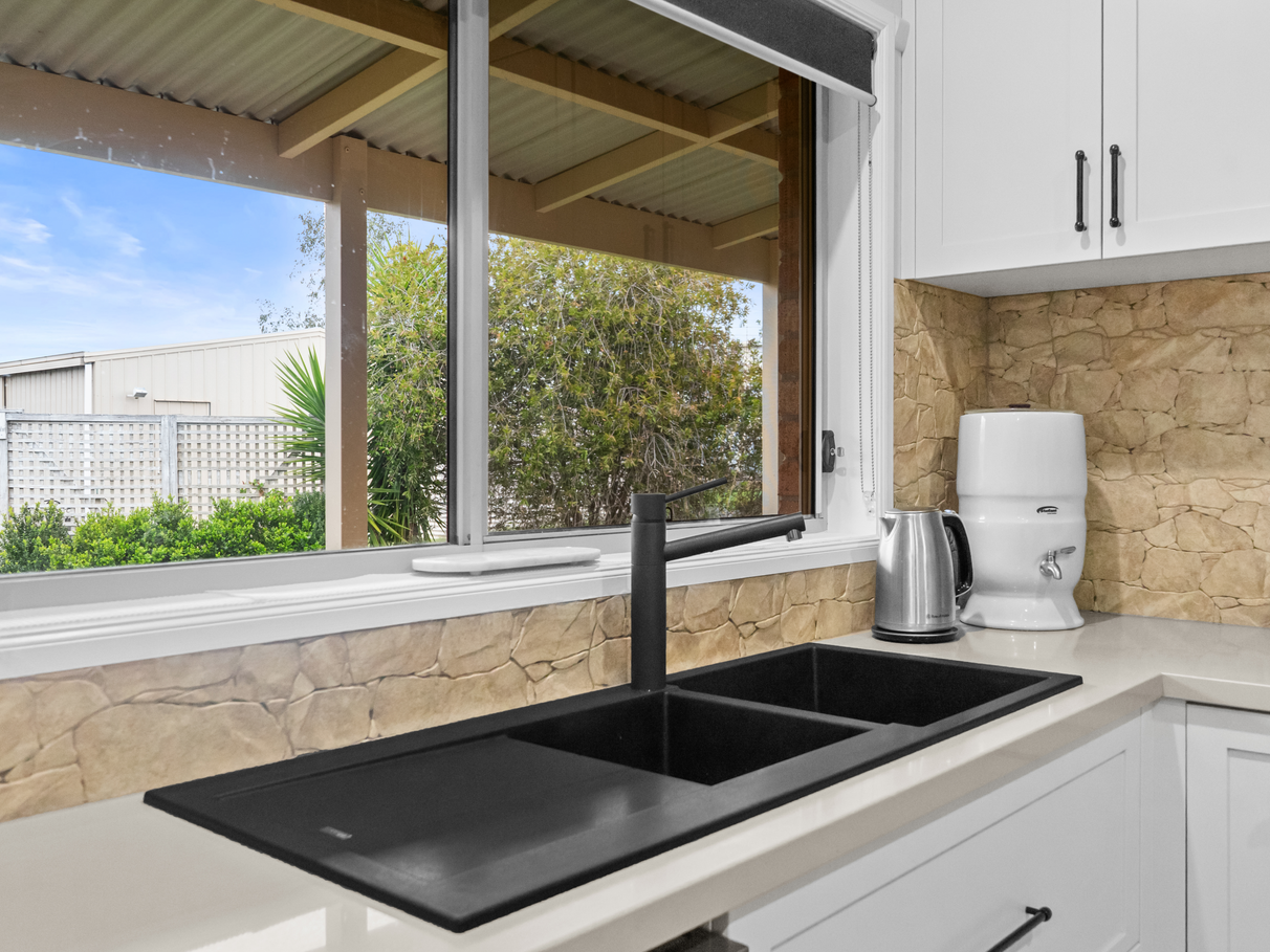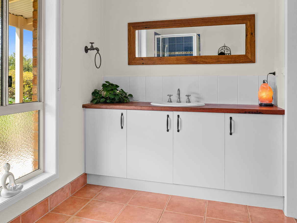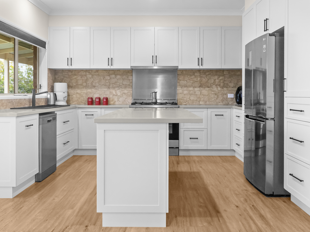 Modern downlights and dimmer switches have recently been upgraded to all the main areas and an impressive designer kitchen fitted in 2023 by local kitchen manufacturer. The 2 pac kitchen contains quality European appliances such as a 6 burner gas cooker/electric oven & rangehood, dishwasher, 2 pantries with shelving and drawers, “waricorner” corner cupboards, Blum soft closing drawers and stone bench tops. The kitchen is complemented with an island bench, usb & power points for your laptop and more soft closing drawers.