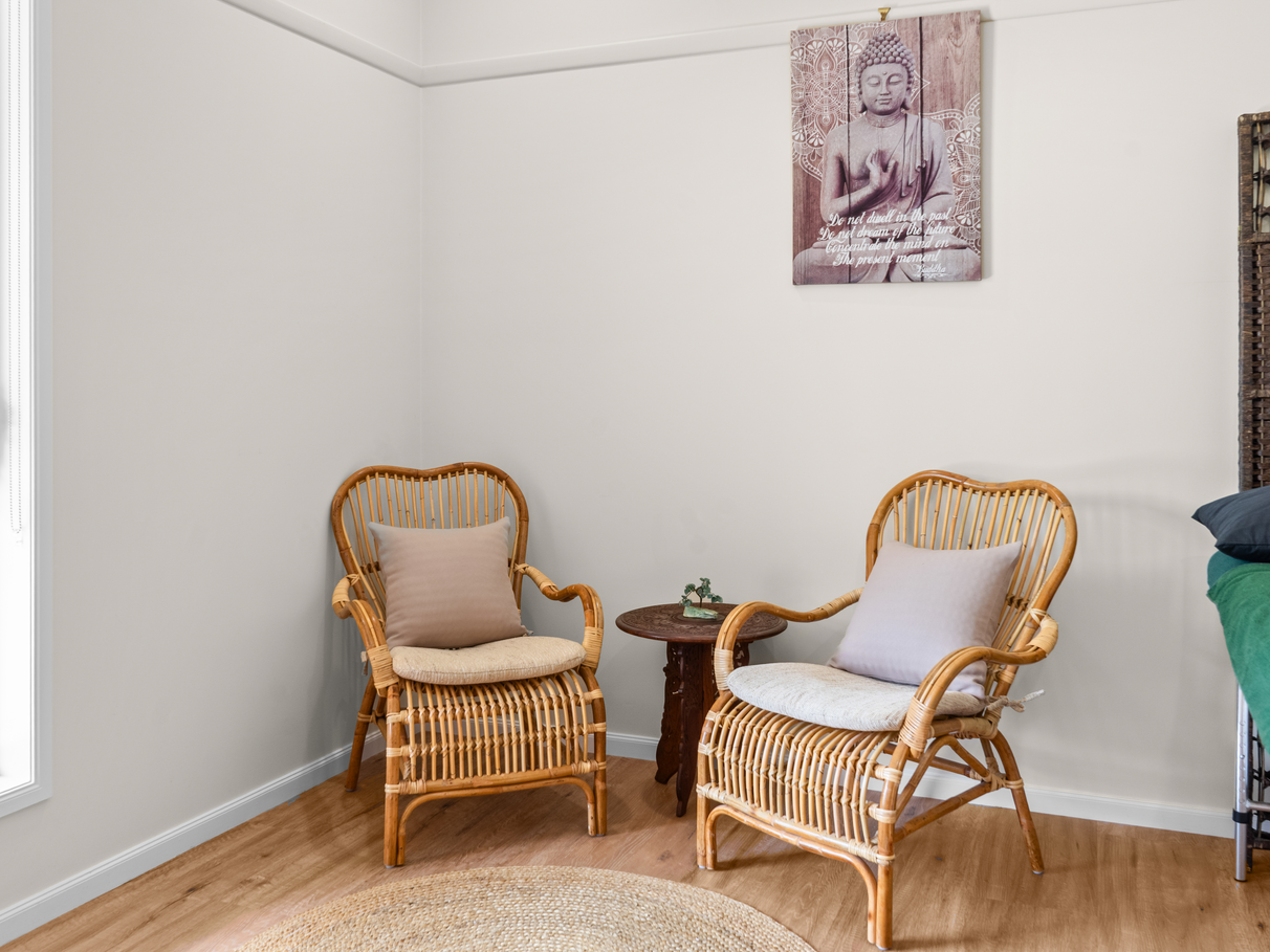 A wood fired pizza oven sits proudly by the back patio overlooking the beautiful gardens, which include vegetables & various fruit trees including lemon, lime, mandarin & passionfruit. A herb garden containing lavender, rosemary, oregano, thyme, lemon balm, blueberries and roses surround an established flowering hawthorn tree.