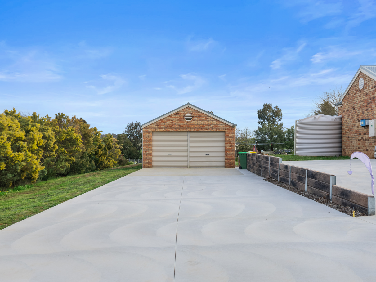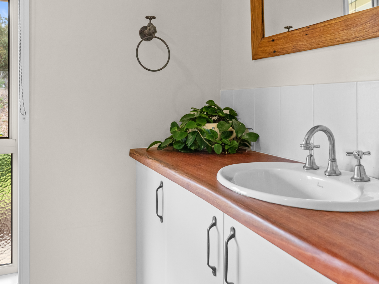 Outside includes a newly concreted driveway and timber look concrete retainer wall leading to a totally separate remote controlled double brick garage. A second driveway leads to a 11 x 7 metre insulated shed with a separate airconditioned studio/workshop, large enough to house your 4 x 4 and caravan. 1.5KW solar system, 2 wood sheds, garden shed, three water tanks (35,000 Litres), which are filtered by a UV Puretec Hybrid ‘G’ Water Filter system.
