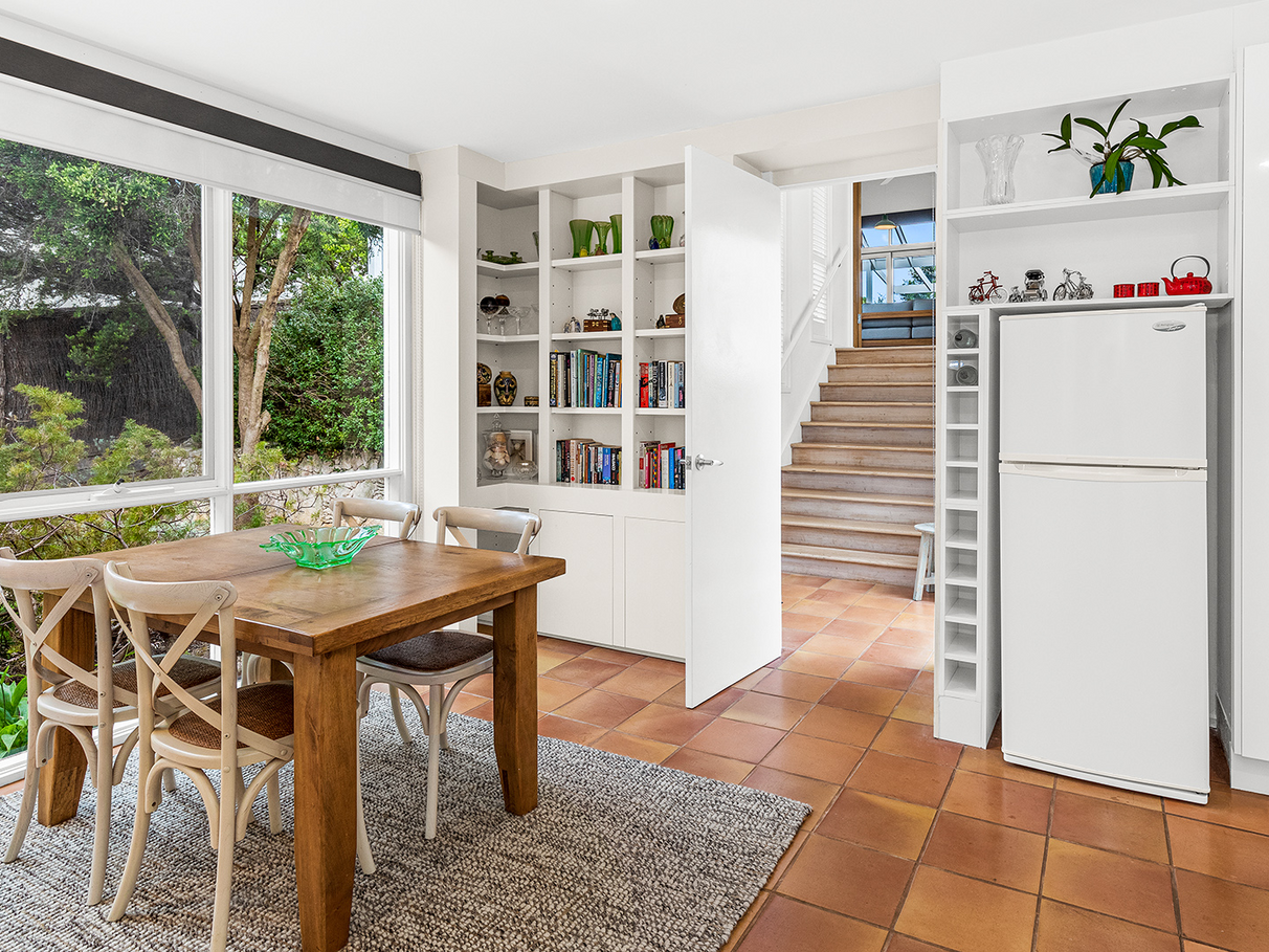The loose stone driveway invites you into the secluded, leafy property. Impressive inside and out, the home showcases an abundance of natural light, local lime stone walls and high quality fixtures and fittings throughout. The main entry takes you into the lower level including a recreational area with built- in bar, bookcase with terracotta tiles, bathroom with double vanity, laundry and two bedrooms both with built-in robes. To the right of the main entry is a wide timber stairway "Bridge" between the lower and upper level of the house.