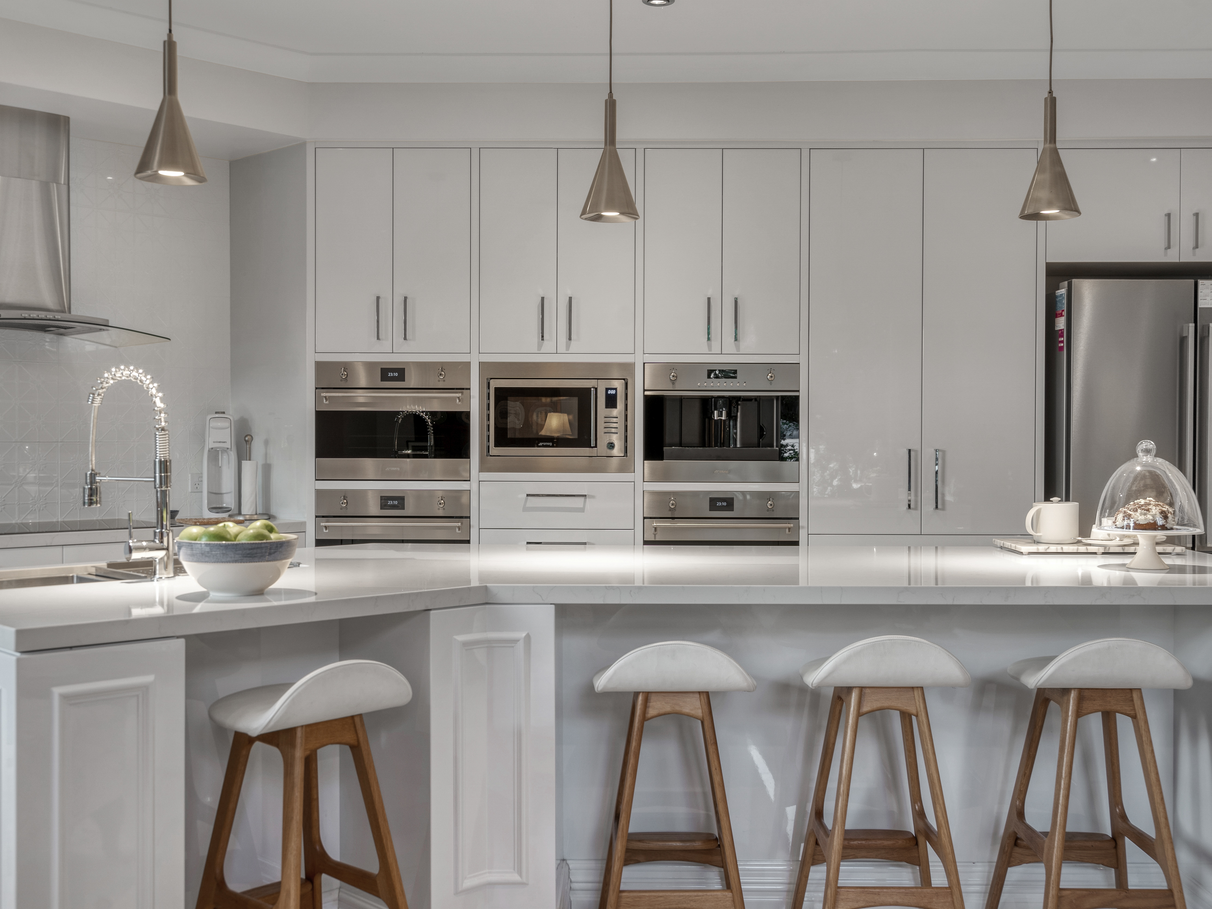 The chef’s kitchen is the heart of the home: a refined space designed for both everyday living and effortless entertaining. Stone benchtops, soft-close cabinetry, and premium Smeg appliances (including pyrolytic ovens) make cooking a joy. A full walk-in pantry and additional day pantry ensure there’s a place for everything.