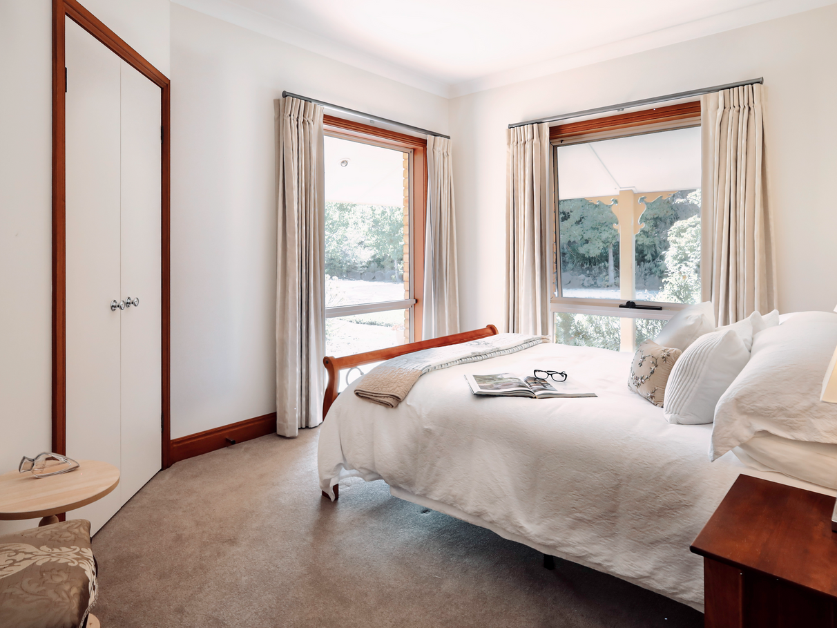 Four generous bedrooms offer peace and privacy, each with built-in robes and serene garden or lake views.