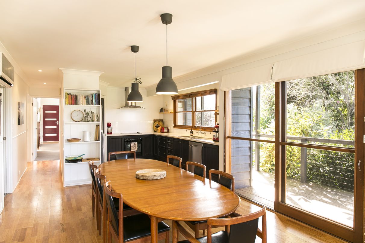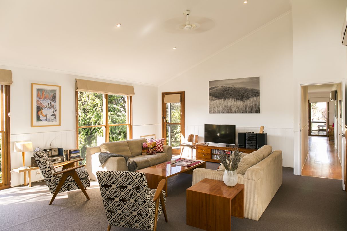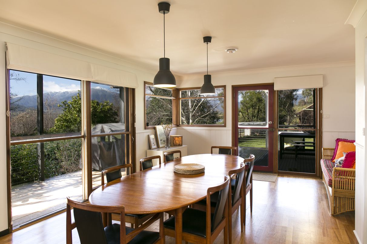 From the dining area you can access a large deck that offers a combination of exposed and covered areas for use all year round. Both the kitchen /dining area and the deck afford stunning views of Mt Bogong.