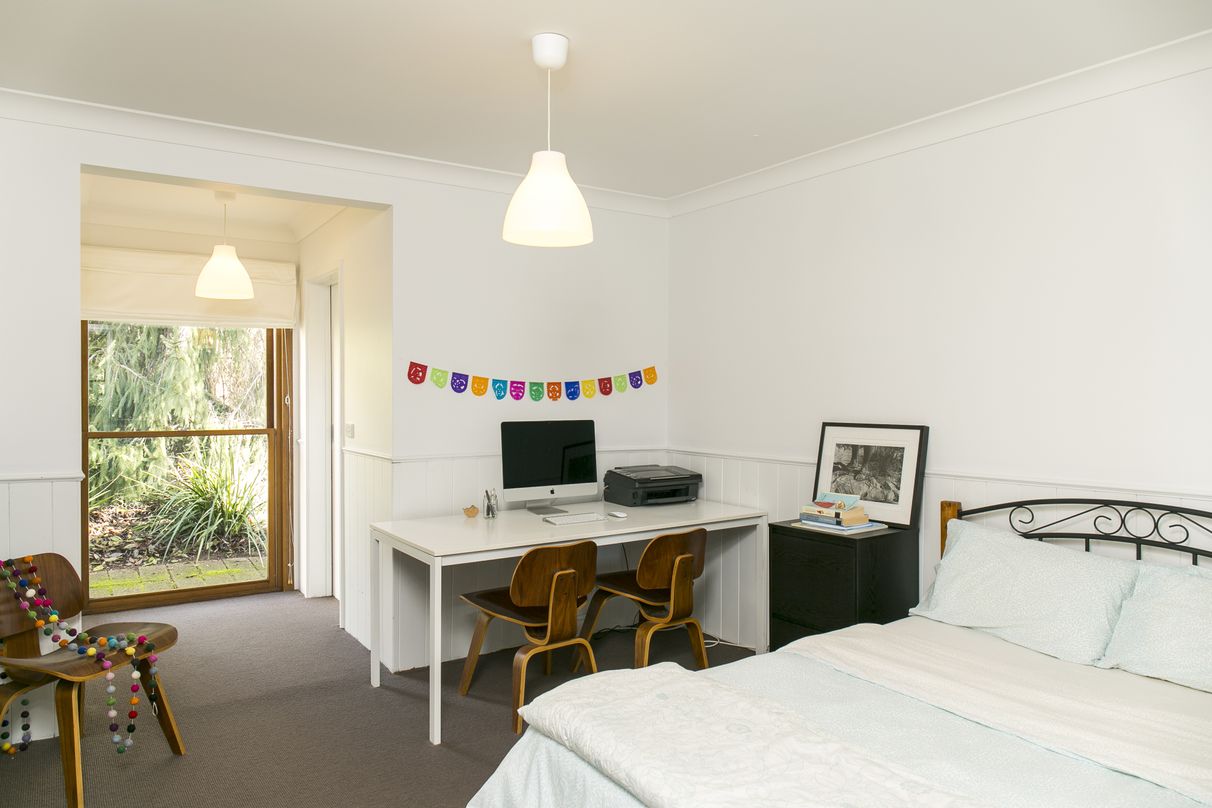 Entering through the front door you encounter a large bright lounge room which boasts a cathedral ceiling, lovely cedar sash floor-to-ceiling windows and access to the north facing balcony. Heating is provided by a solid fuel Nectre heater and/or reverse cycle split system air conditioner.