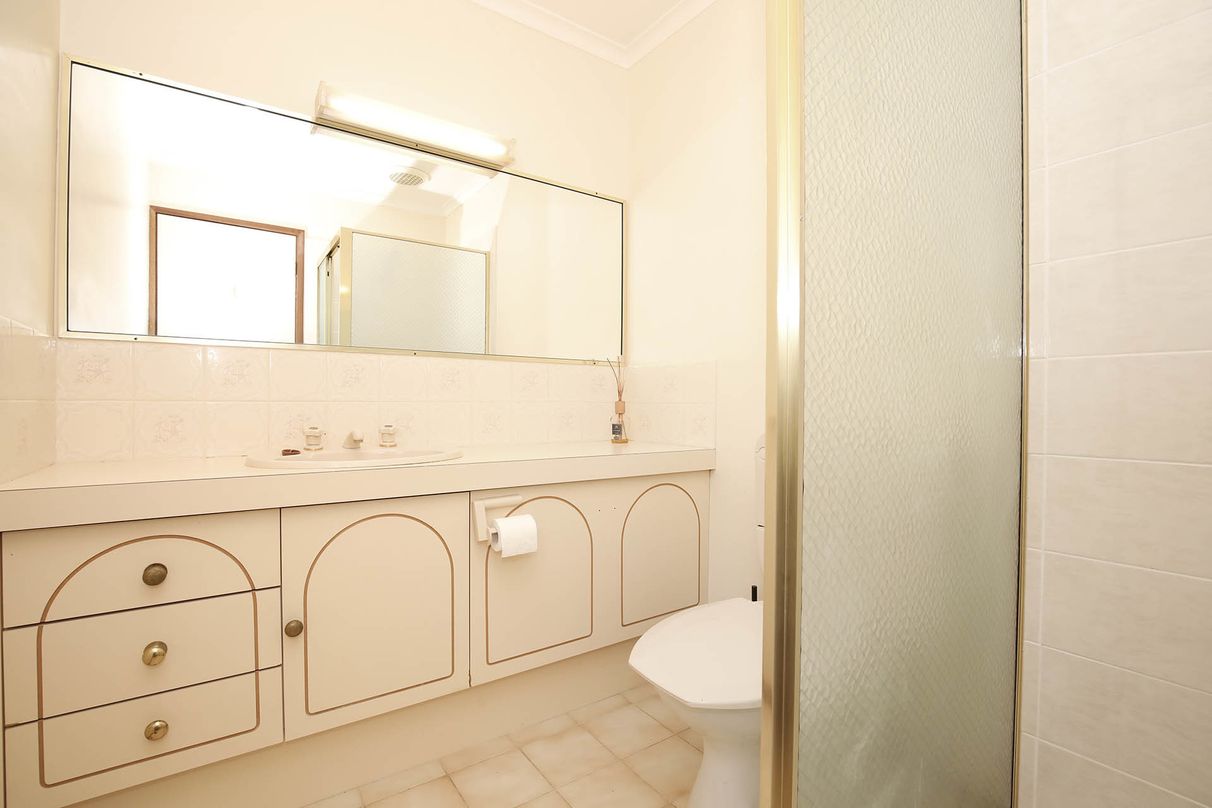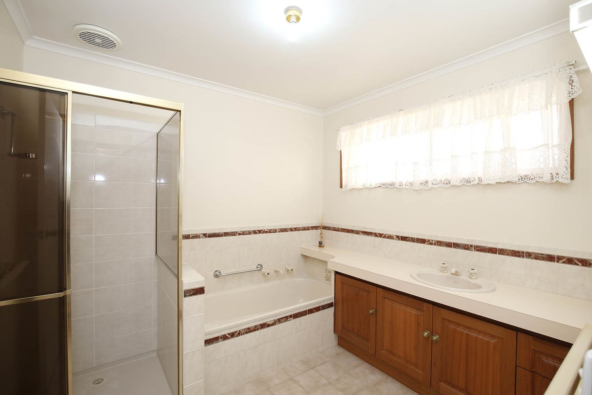 Features of ducted reverse cycle heating and cooling, gas wall furnace and reverse cycle air-conditioner, roller shutters and extra-large laundry with large built-in bench/storage and linen cupboards. Three generous bedrooms and two bathrooms both with newly replumbed showers - an unusually large family bathroom with separate toilet, and the master with walk-in robe and ensuite.