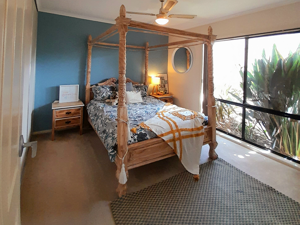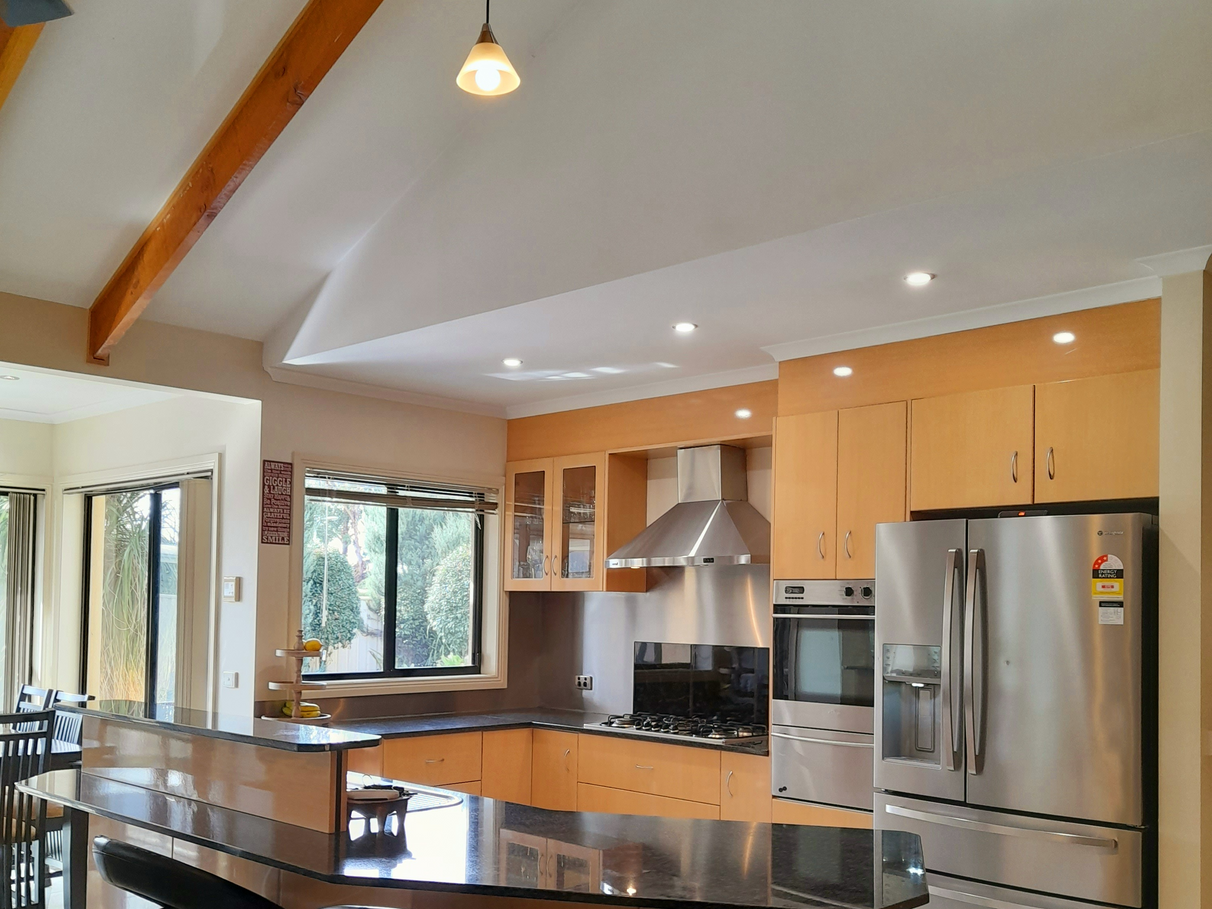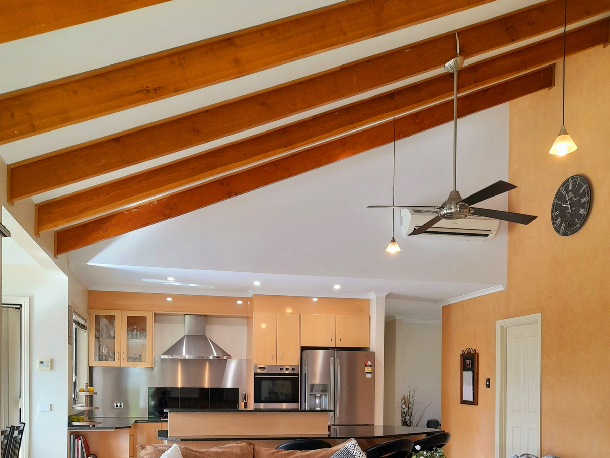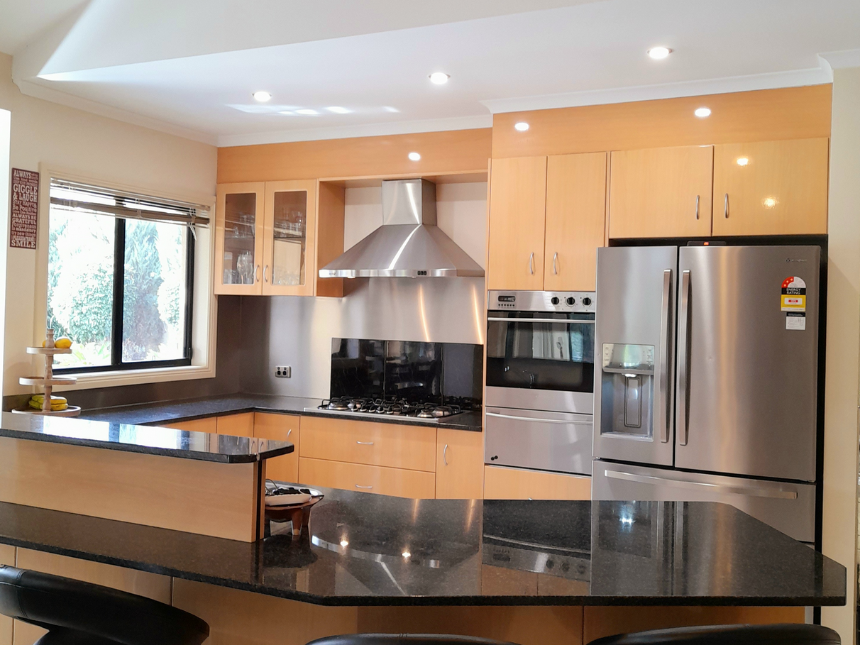 The main kitchen and living area is kissed in sunshine throughout the entire year. The unique cathedral ceilings with exposed beams certainly bring the wow factor. The user-friendly kitchen with granite stone bench tops, 6 burner gas cooktop and electric wall oven. Walk in pantry with enough storage for appliances. Solid fuel heating heats the entire home through winter with the option of a secondary split system located in the centre of the home.