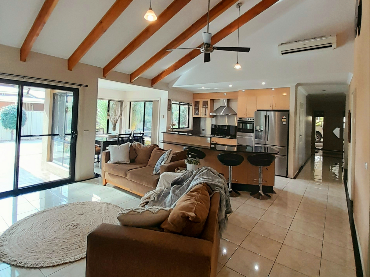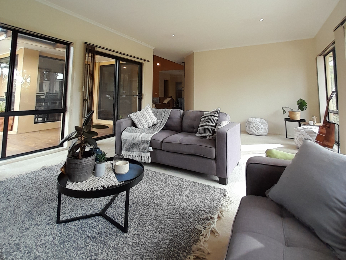 Solid brick, fully rendered home with colourbond roofing, contains 3 large living areas, 3 bedrooms plus an optional 4th bedroom.