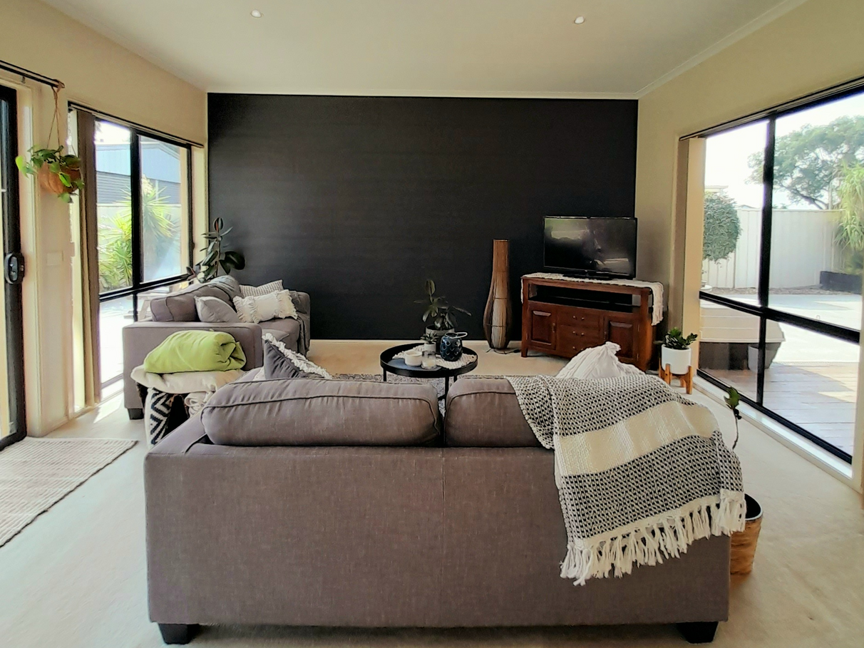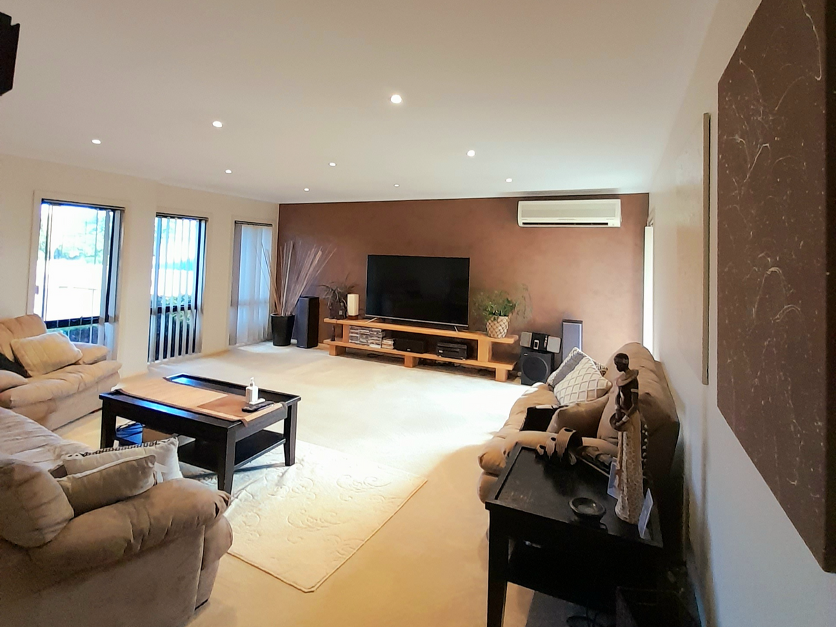 Large front lounge/living room complete with split system cooling and heating.