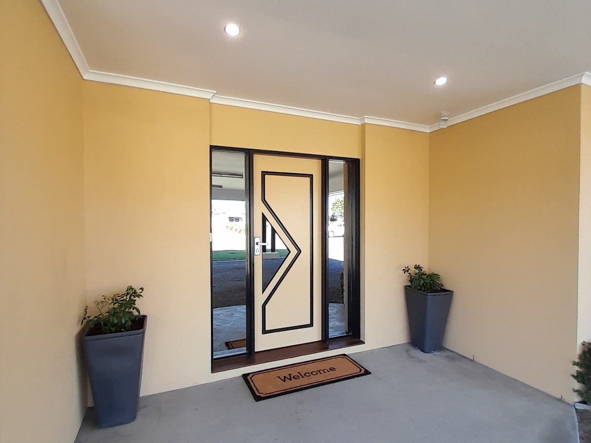 The welcoming concrete edged horseshoe driveway make for easy access to the undercover grand drive through undercover entrance.