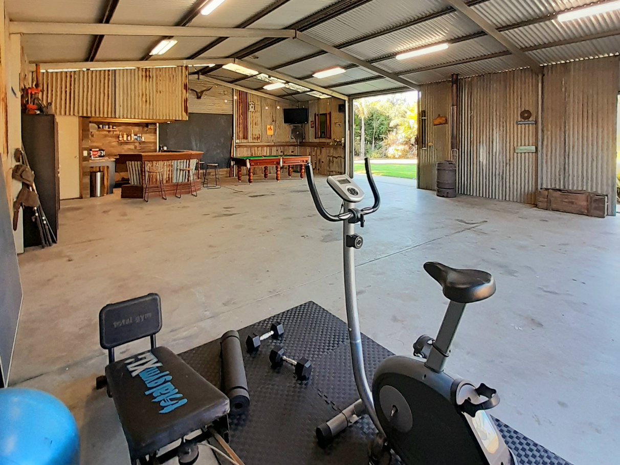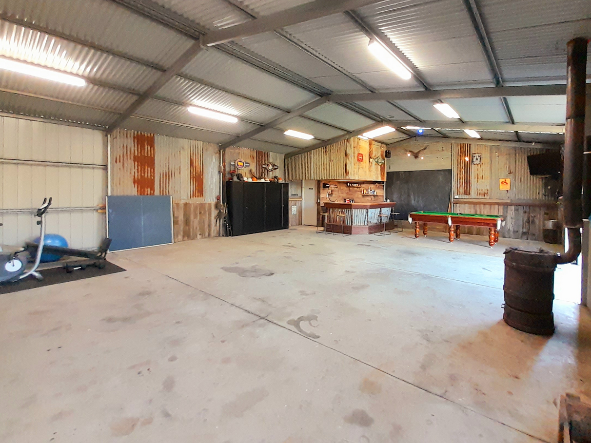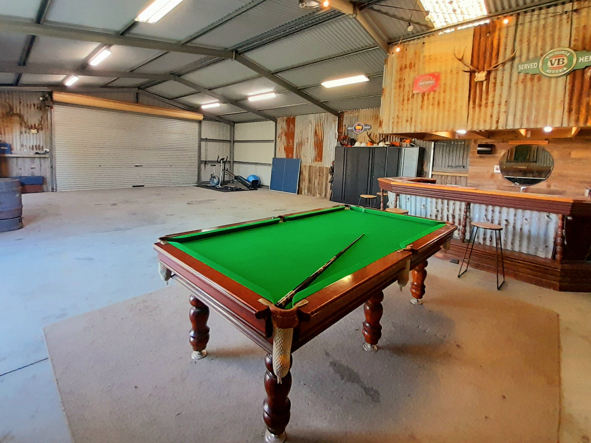 The fully insulated 12 x 9 metre shed is set up for the entertainer comprising of a built-in bar, running water and toilet. Pot belly fireplace for those cold winter nights. Plenty of storage including an enclosed mezzanine floor above the bar area.