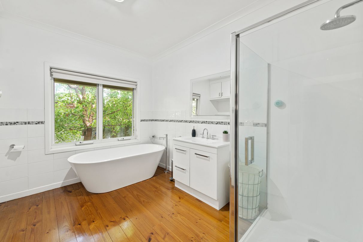 Three bedrooms, all well proportioned, sporting built in robes and ceiling fans. The renovated modern bathroom is filled with lovely natural light and sports a stunning freestanding with bath. A second toilet accommodates for the whole family with ease.
