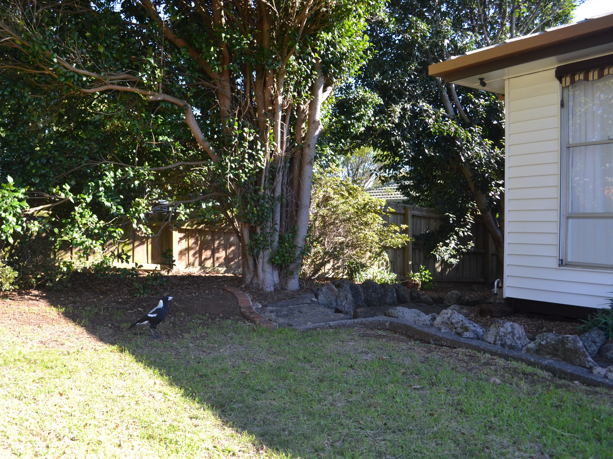 The exterior is freshly painted and has aluminum windows, vinyl cladded (no need for painting) walls, a large under house area with concrete stumps. Tiled roof, modern lock up double garage with concrete and power plus a single car under cover carport. A large size garden shed with a concrete floor. A fenced off mufti purpose area for chickens, vegetable garden dog run etc. , large front and rear yards with established gardens with plenty of opportunities for the keen gardener. Fully concreated drive way and paved walkways, rear under cover patio area plus an outdoor space for bbq’s.
