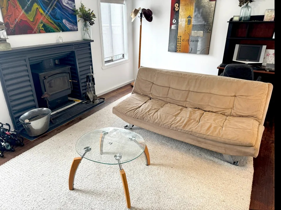 - Fan-forced wood combustion heater in lounge room - heats entire house, cheap to run 🔥