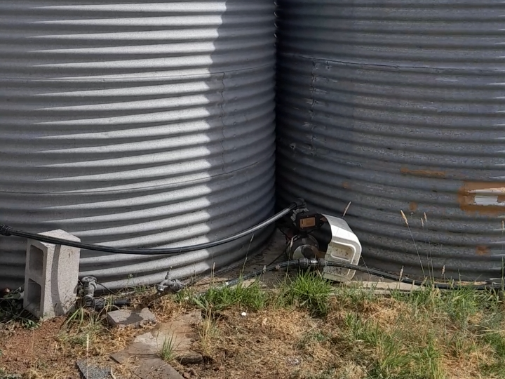 - 2 x 12,000L galvanised water tanks large high volume orange branded pump