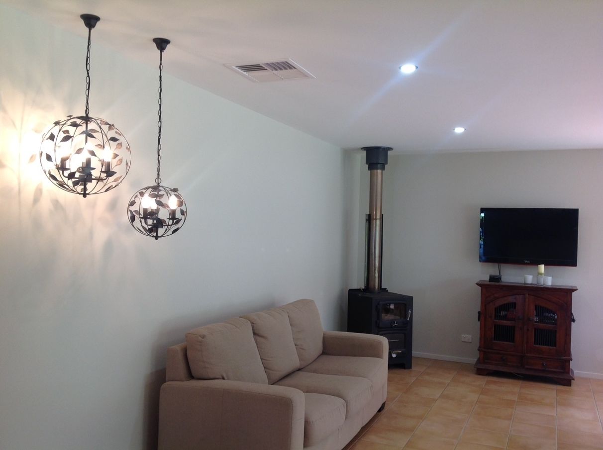 Family comfort has been catered for, with two wood fires, one in lounge-room, one in living area, in addition to in floor heating, evaporative, and, reverse cycle split system cooling. All of these, in addition to, the aforementioned overhead fans.