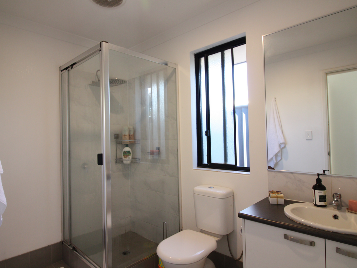 The shower has a rain head and solar hot water with a gas booster provides all the hot water you could ever need.
