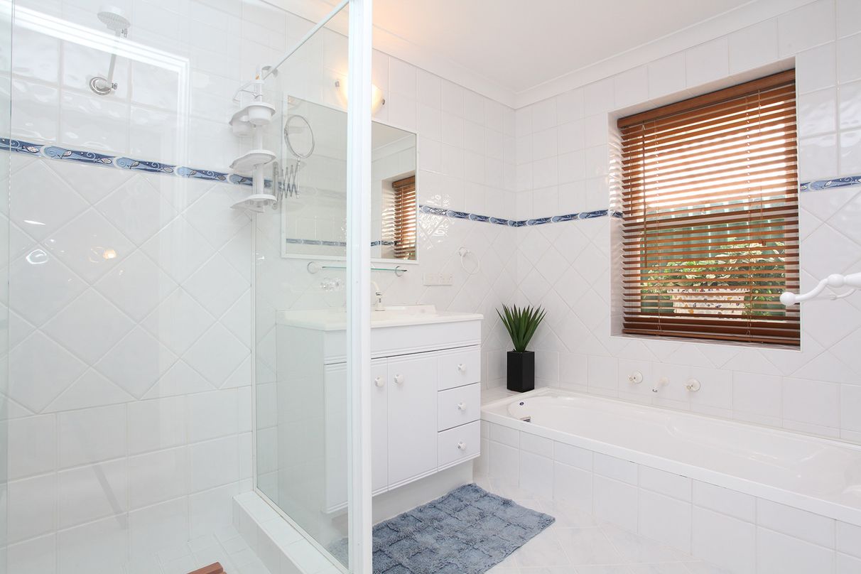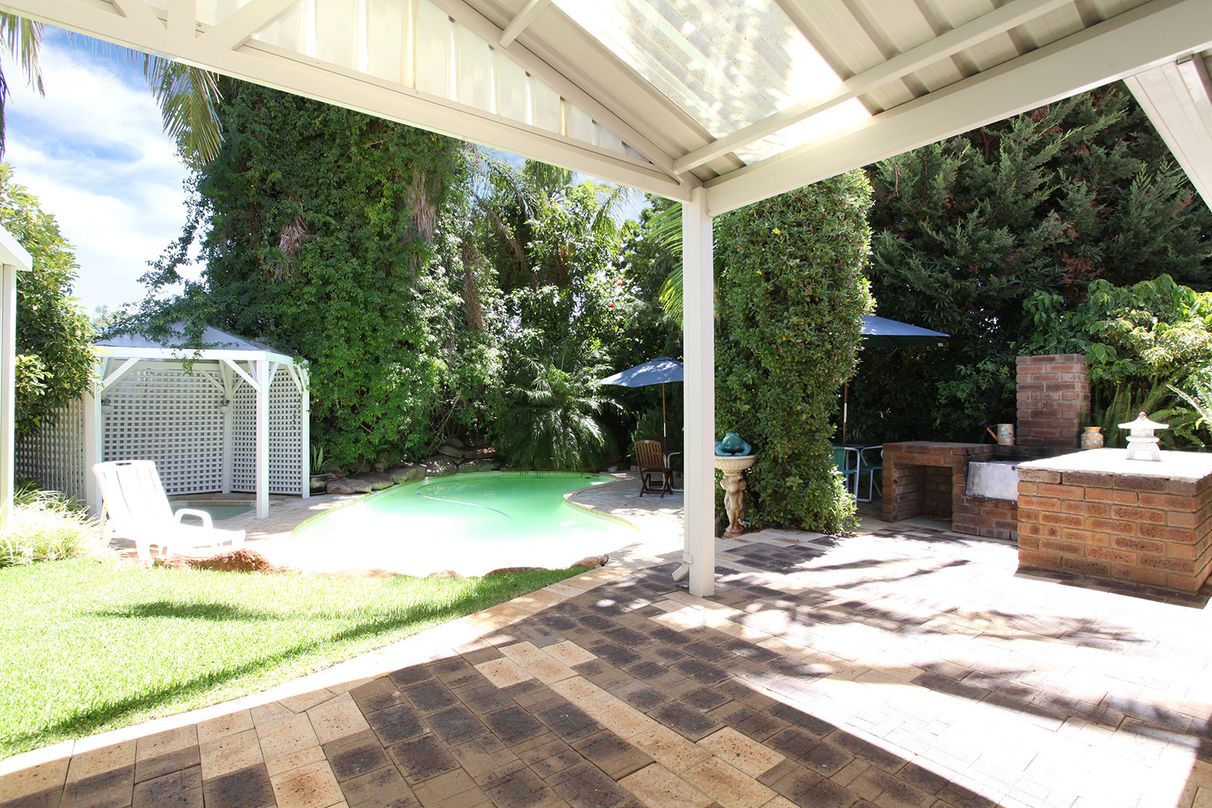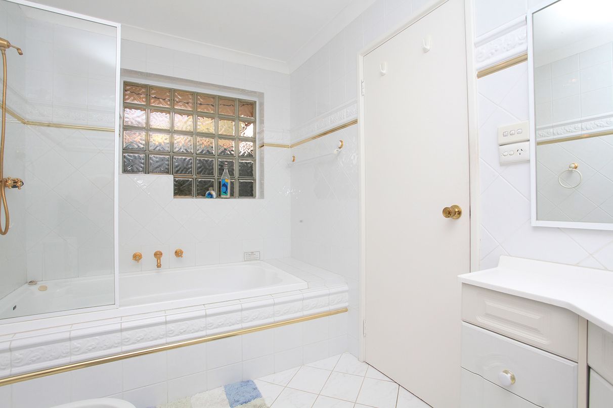 At a glance, accommodation consists of 4 generous bedrooms, all with built-in wardrobes, plus a study - serviced by a large family bathroom with bath and separate toilet. A en-suite with spa and bidet to the large master bedroom with a wall of mirrored built in robes; and, a third bathroom adjoining the laundry - perfect for rinsing off after a swim!