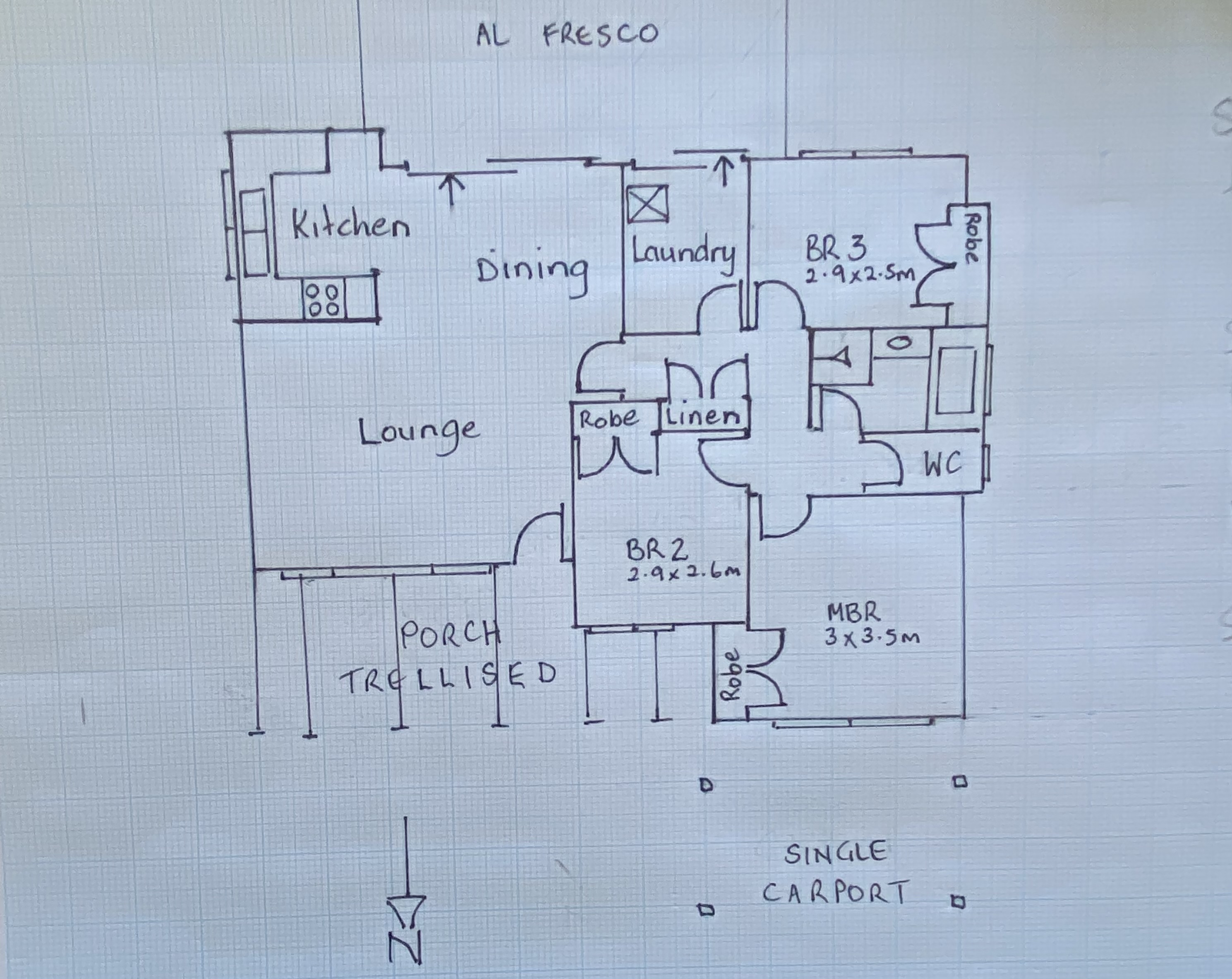 A brand new 80L electric hot water system and a small garden shed for the mower and garden tools, is situated on the West side of the house. A generous driveway leads to the carport, with an extra parking bay off the side where a caravan or camper trailer can be parked up, out of the way.