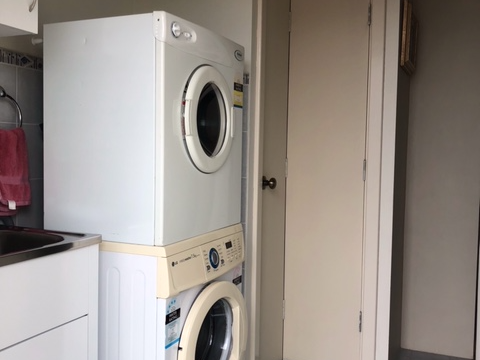 The laundry has a corner cupboard for linen & storage.