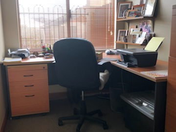There is a separate dedicated home office with corner desk and filing cabinets.