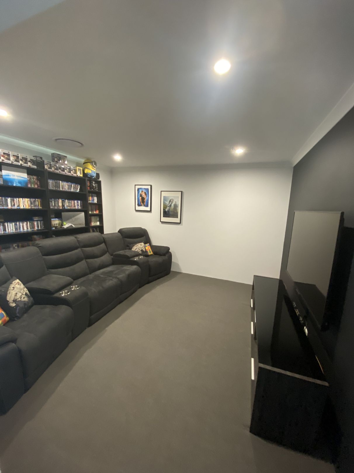 A large door entrance at the front of the property starts the journey. There is a theatre space at the left, that would also be suitable as a study, with plenty of extra power points.