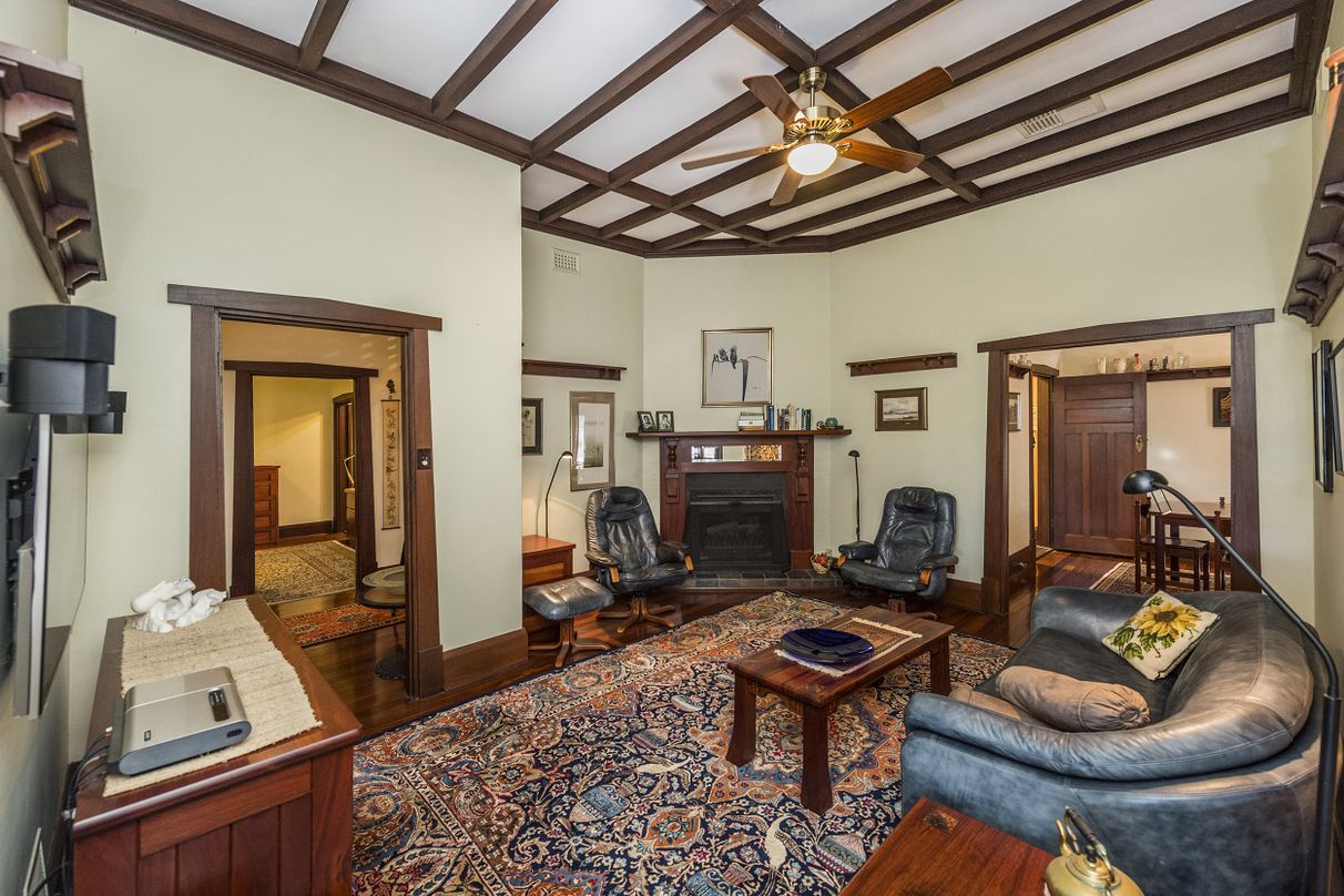 Features: 1012m^2 block; 3.4m ceilings; 3 large bedrooms; 2 bathrooms; kitchen and separate dining and family rooms. There is a large studio/games room above the double garage and the garage has a wine cellar and storage room. Covered, level access from garage to rear door. 5kW solar system (20 panels); reverse-cycle air conditioning; ceiling fans; gas fireplace; wood-fired slow combustion heater; underground power; natural gas connection; NBN connection; subsurface reticulation to gardens.