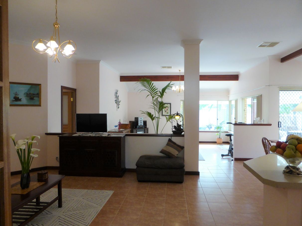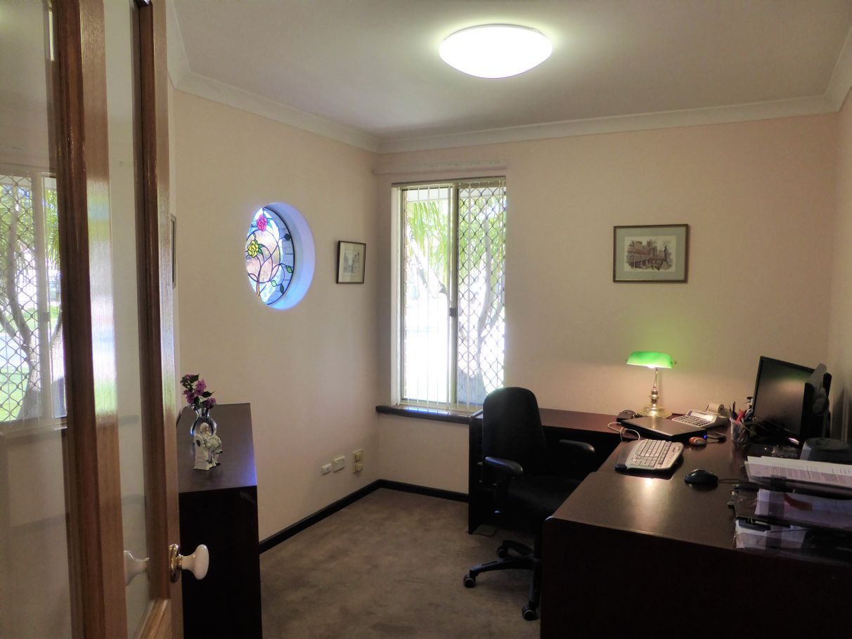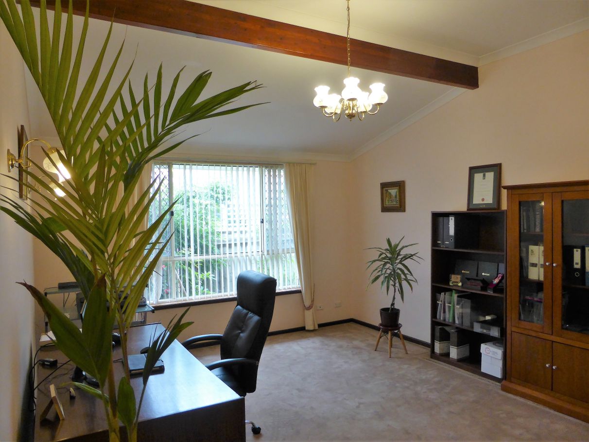 • Formal sunken living room/home office with quality carpets, quality light fittings, high ceilings, swags and vertical blinds.