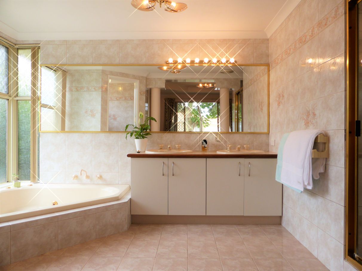 • Bathroom features include quality fittings, luxurious corner spa bath and vertical blinds.
