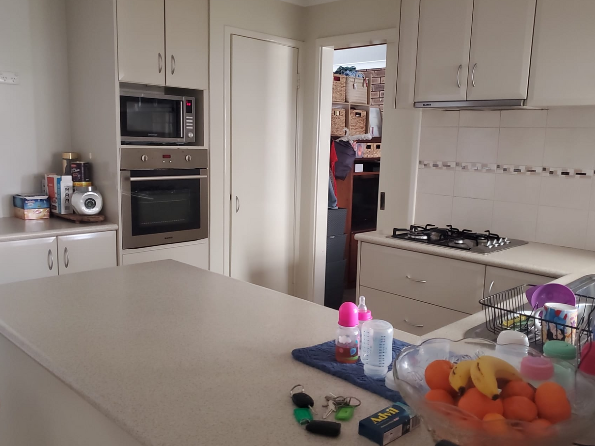 Conveniently, the separate toilet and laundry are located on the opposite side of the house, providing easy access to the roomy central family area. This area overlooks the functional kitchen equipped with stainless steel appliances, including a gas hotplate and under-bench oven. You'll find ample storage in this well-designed kitchen.