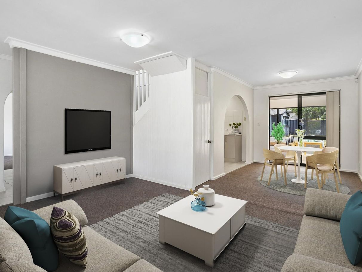 The house has 4 good sized bedrooms, huge new walk in "his and hers" robes in the main bedroom, large modern ensuite/toilet with split a/c, built in robes to 2nd bedroom, large main modernised bathroom with separate toilet. At the front is a large separate Study, Lounge/dining with a/c. Under the stairs is a huge storage area or can be converted into a cellar.