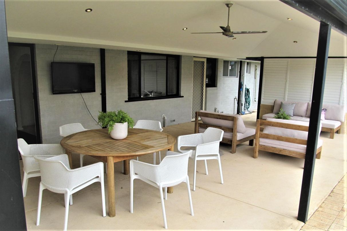 Come and inspect LOCATION, LOCATION, LOCATION, you will see a huge living and entertainment area, enclosed with outdoor white shutters, TV, ceiling fan, well lit and protected for all occasions at the rear of the house.