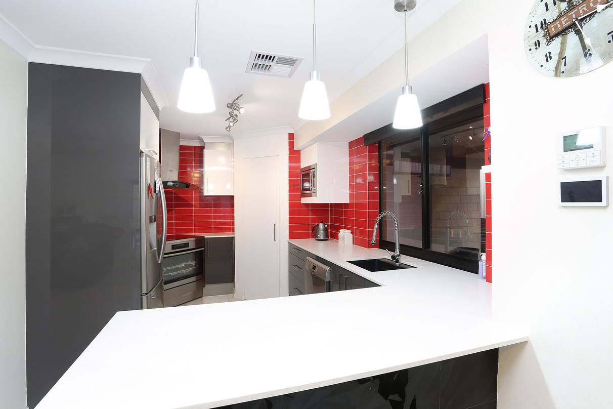 - Well-appointed kitchen with ample cupboards, feature splashback and quality stainless steel appliances including a dishwasher, Westinghouse 900 cooktop oven, Samsung fridge and microwave