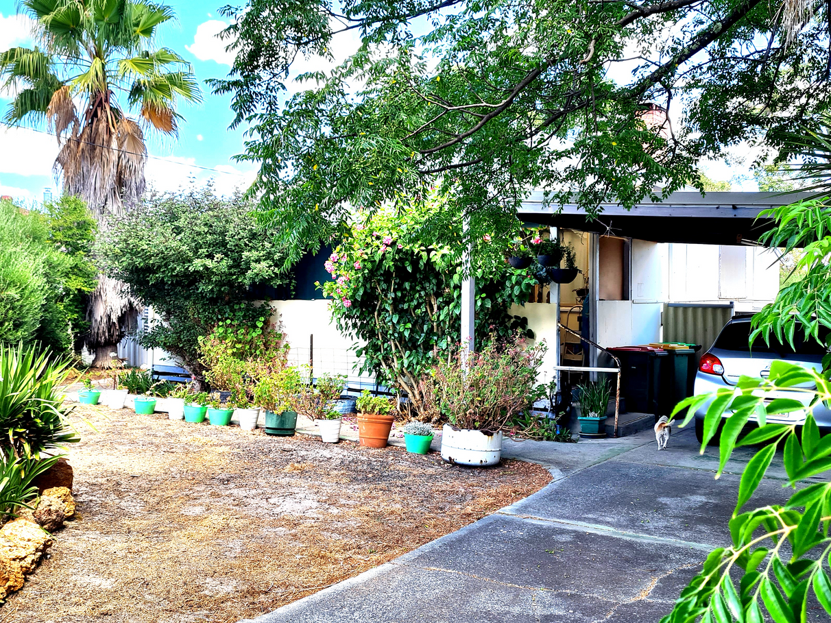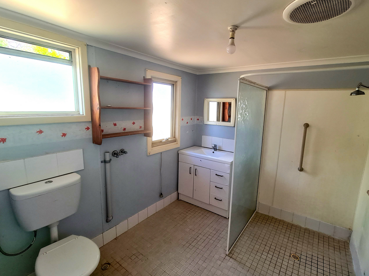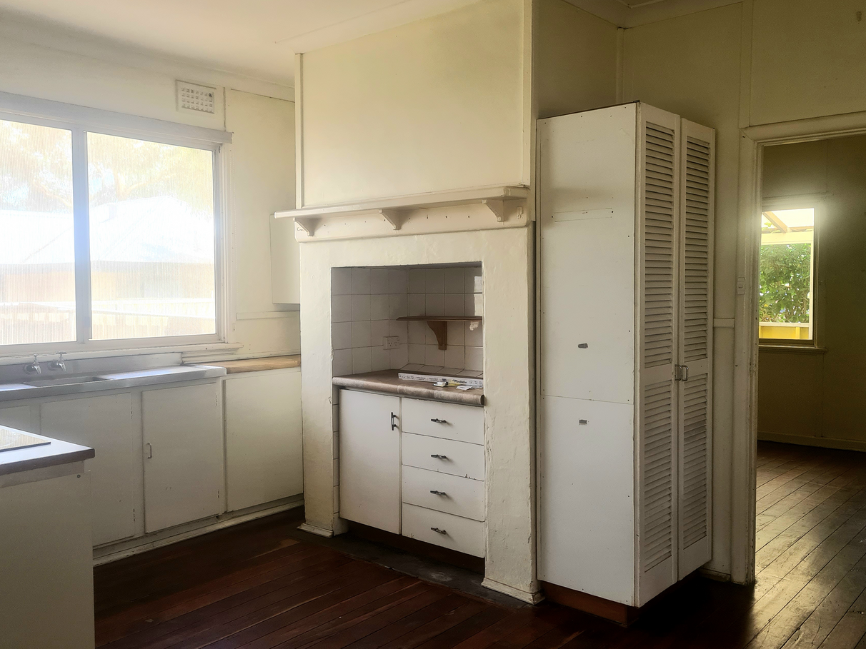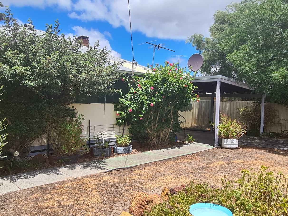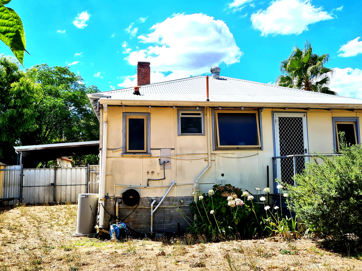 The cozy 3-bedroom house is about 60 years old and built forward on the block with access through double gates behind the car port to the entire back garden. The back is like a large private park and has a 3 x 3 mt shed.