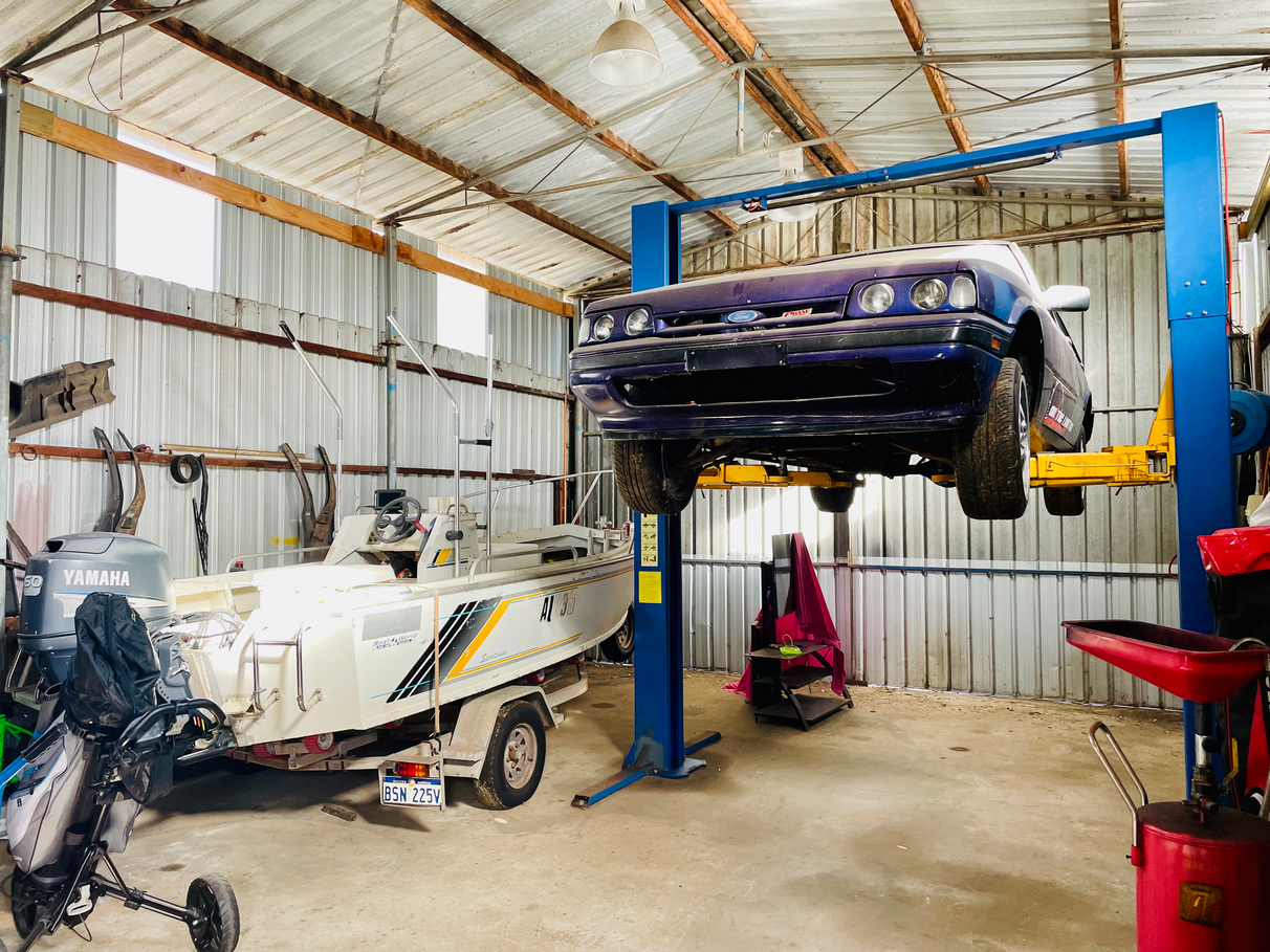 There’s plenty of space with a large shed to fit the boat and with a car hoist it’s every boater/ car enthusiast dream.