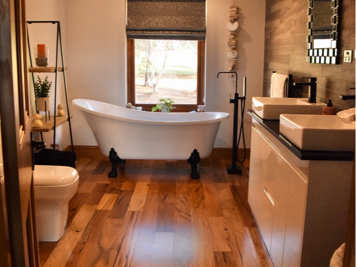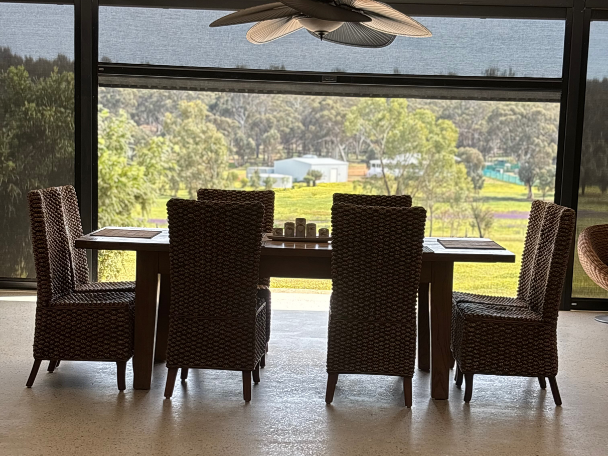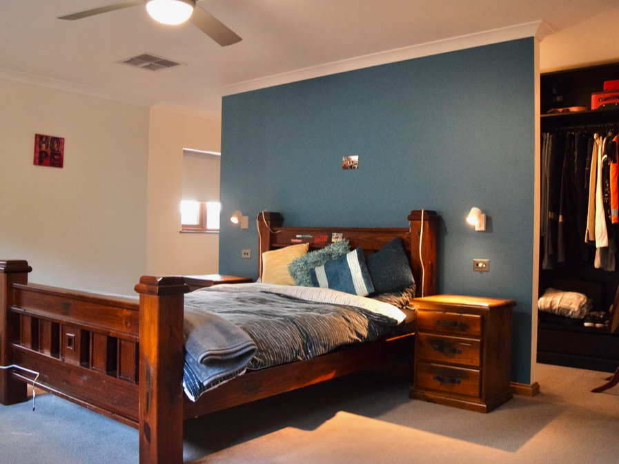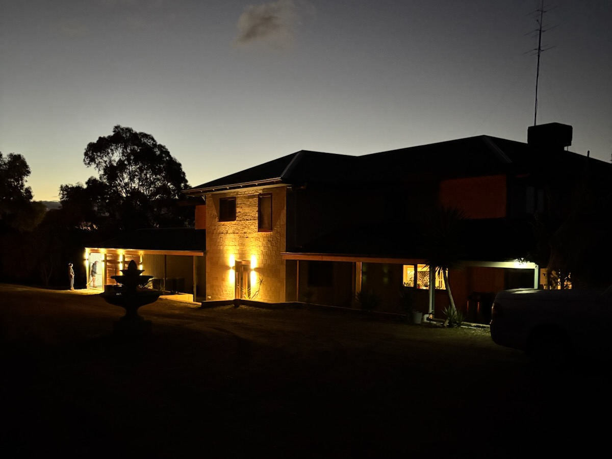 The open plan stair case allows light to flow between the two levels, the upper level leads on to a balcony looking out to the open paddock and as far the eye can see. Down stairs is the main lounge and a formal lounge which leads off into another room looking on to the paddock.
