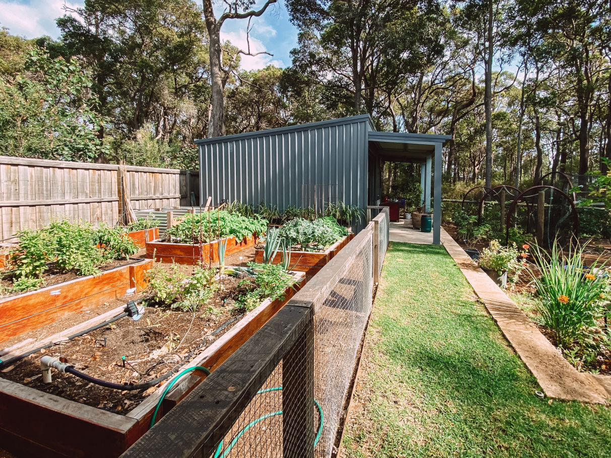 Fruit trees including rasberries, blueberries, mulberries, apples, pears, oranges, apricots, nectarines, peaches, apples, lemons, limes, avocados, mandarins, finger limes and grapes.