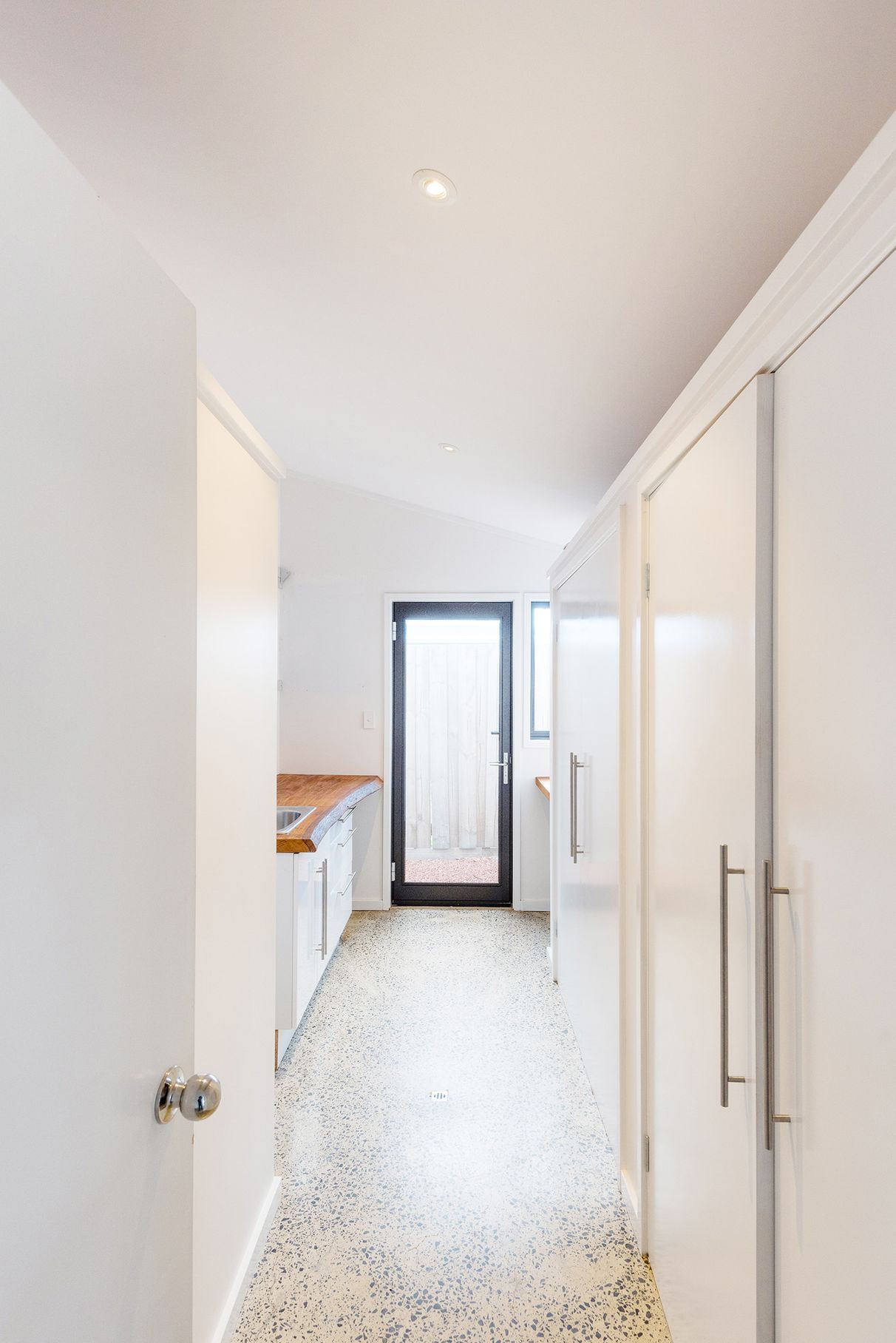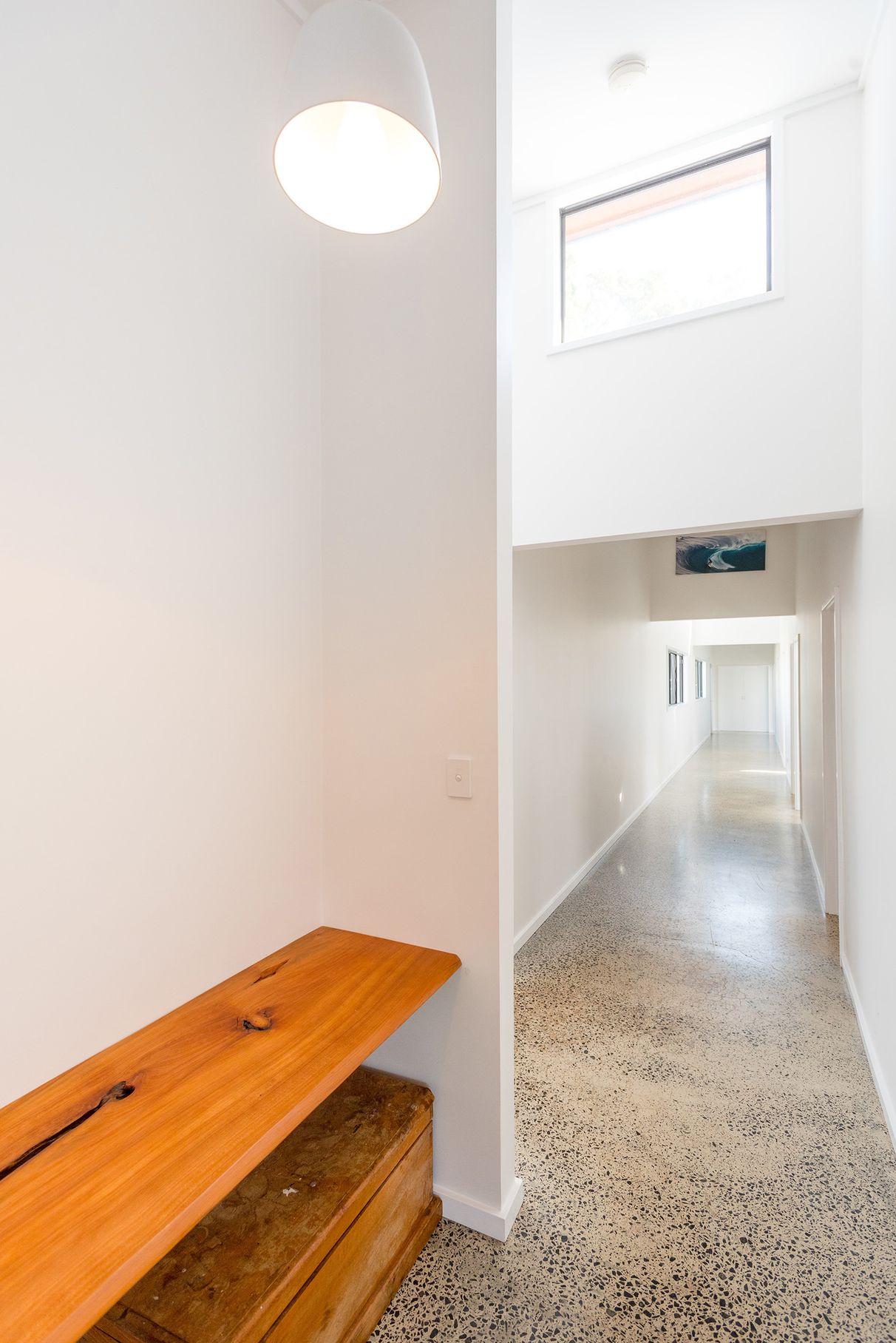 - Polished concrete throughout all living spaces, hallways, main bathroom & laundry